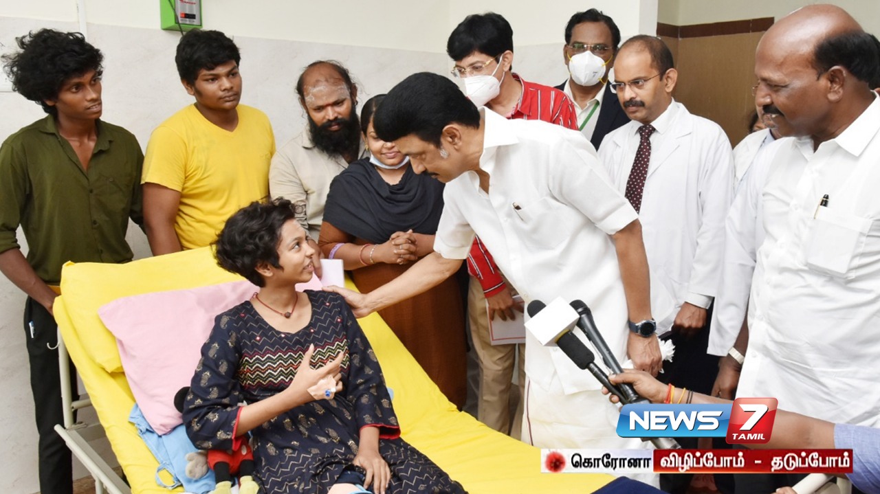 இதனையடுத்து மாணவி சென்னை ஒமந்தூரார் அரசு மருத்துவமனையில் சிகிச்சைக்காக அனுமதிக்கப்பட்டுள்ளார், அவரை இன்று நேரில் சந்தித்து நலம் விசாரித்தார் முதலமைச்சர் ஸ்டாலின். சிந்துவிற்கு அளிக்கப்பட்டு வரும் சிகிச்சை குறித்து அமைச்சர் மா சுப்பிரமணியன் விளக்கினார். முதலமைச்சருடன் புகைப்படம் எடுக்க மாணவி விரும்பியதையடுத்து, அவருடன் புகைப்படம் எடுத்துக் கொண்டார் முதலமைச்சர் ஸ்டாலின்.