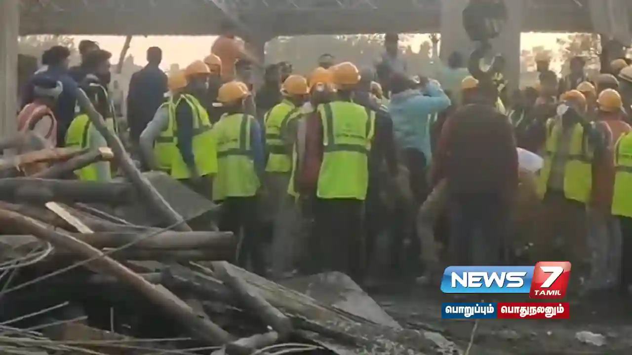 இதில் கட்டுமான பணியில் ஈடுபட்டிருந்த தொழிலாளர்கள் இடிபாடுகளுக்குள் சிக்கிக் கொண்டனர். உடனடியாக இதுகுறித்து போலீசாருக்கு தகவல் தெரிவிக்கப்பட்டது. இதன்பேரில் சம்பவ இடத்திற்கு விரைந்து வந்த போலீசார் மற்றும் மீட்பு படையினர் தொழிலாளர்களை மீட்கும் பணியில் ஈடுபட்டனர்.
