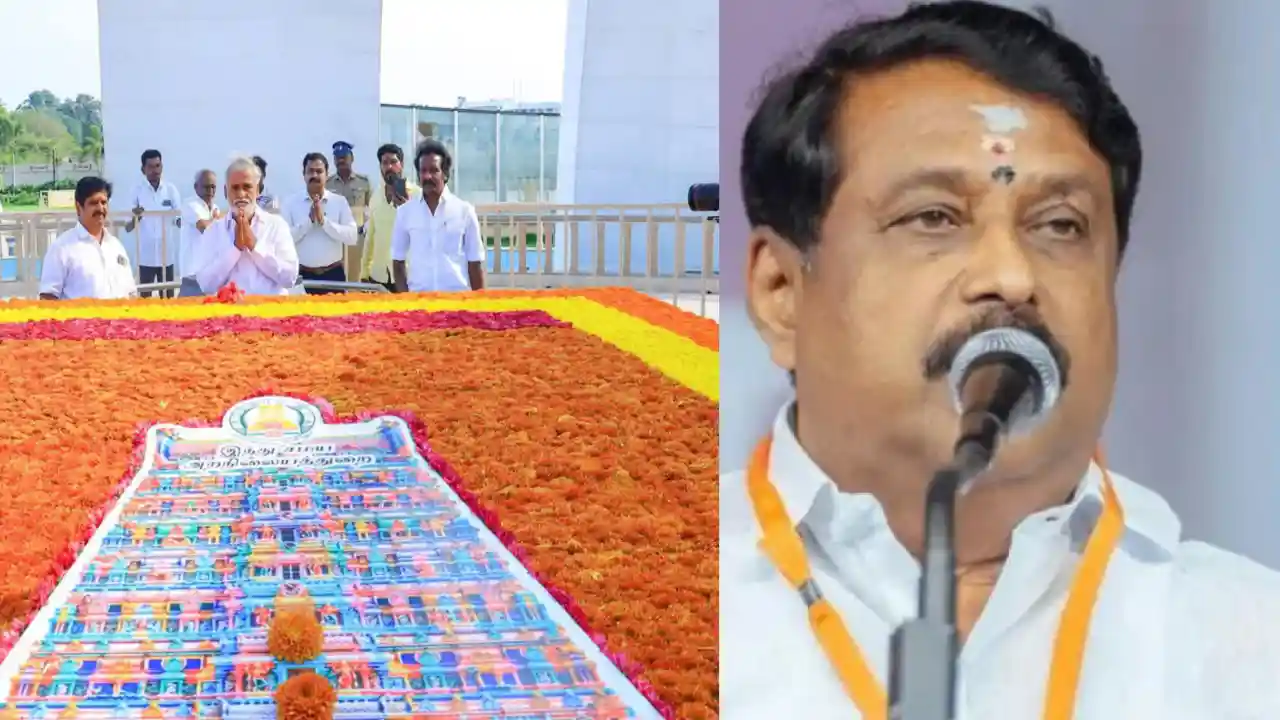 “மறைந்த கருணாநிதி கல்லறை மீது, தமிழகத்தின் தனி அடையாளமான திருவில்லிப்புதூர் கோவிலின் கோபுரத்தை வரைந்து வைத்திருக்கும் திமுக அரசின் தவறான செயல் கண்டிக்கத்தக்கது. பொட்டு வைக்காதே, திருநீற்றை அழி, நாமம் என்றால் பழி” என இந்துக்களின் நம்பிக்கைகளையும், இந்து சமயங்களையும் இழிவு செய்தது போதாதா?