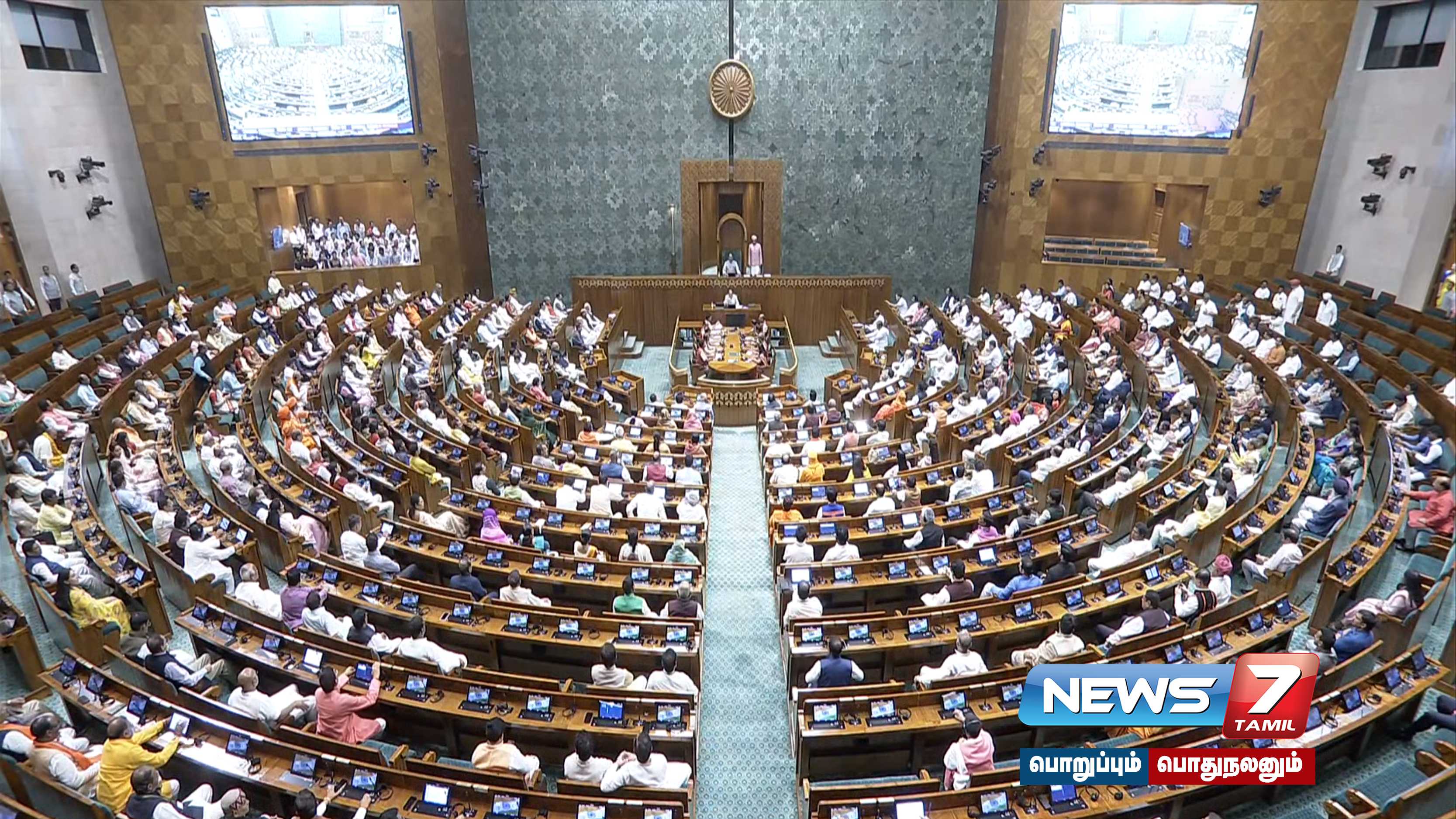 பிரதமர் நரேந்திர மோடி தலைமையில் மத்திய அமைச்சர்கள் மற்றும் உறுப்பினர்கள் பேரணியாக சென்றதும் புதிய நாடாளுமன்றத்தில் சிறப்பு கூட்டத் தொடர் இன்று தொடங்கியது.