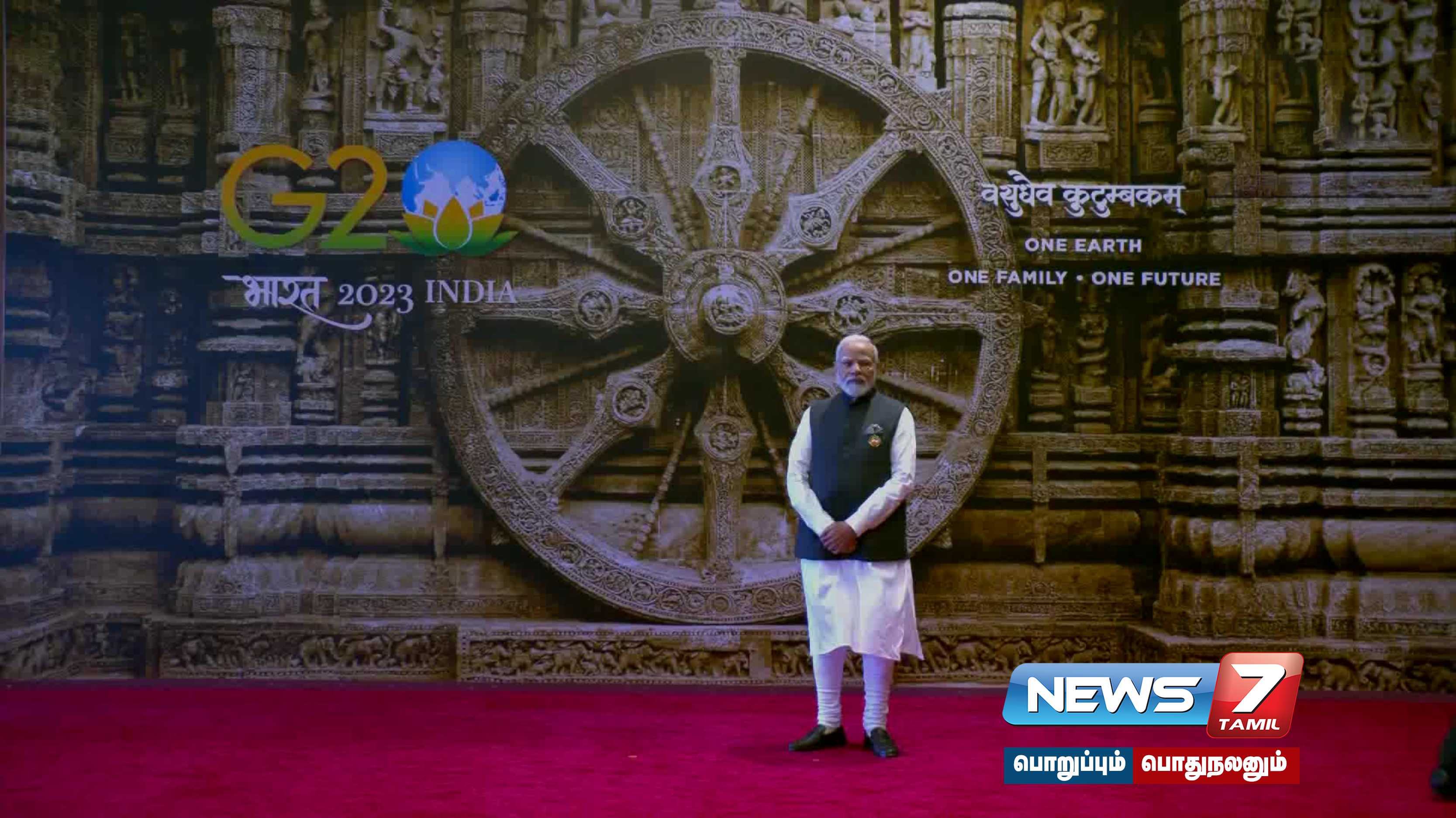 மாநாட்டில் கலந்து கொள்ள இருக்கும் தலைவர்களை, பிரதமர் நரேந்திர மோடி டெல்லி பிரகதி அரங்கில் ஒடிசா கோனார்க் சக்கரம் அமைக்கப்பட்டுள்ள பகுதியில் வரவேற்றார். இந்த கோனார்க் சக்கரம் 13 ஆம் நூற்றாண்டில் மன்னர் முதலாம் நரசிம்மதேவாவின் ஆட்சியில் கட்டப்பட்டது என்பது குறிப்பிடத்தக்கது.