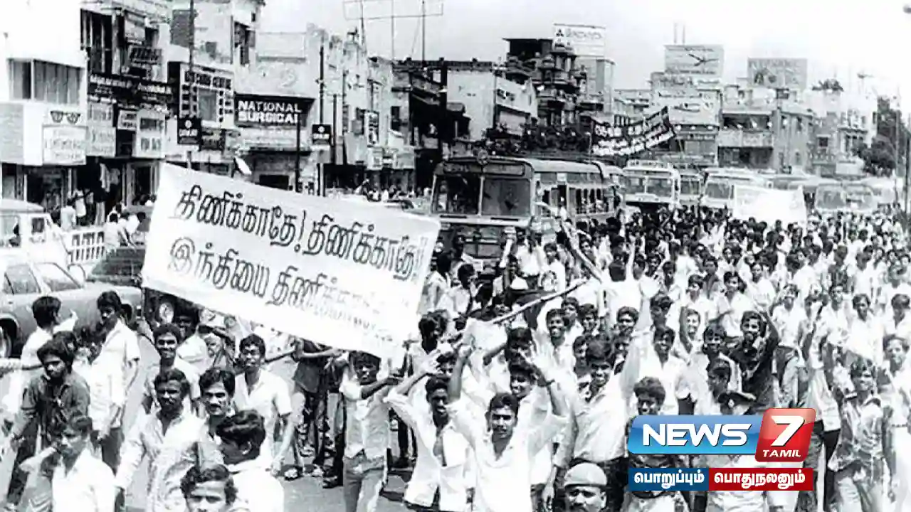 பிரிட்டிஷ்காரர்கள் இந்தியாவை ஆட்சி செய்யும் போது ஆங்கிலமே ஆட்சி மொழியாக இருந்தது. சாதி, மத, மொழி, பாலினம் என எந்த வேறுபாடுகளும் இன்றி அனைத்து தரப்பு மக்களின் கூட்டு முயற்சியாக இந்தியாவிற்கு விடுதலை கிட்டியது. ஆனால் விடுதலை பெற்ற இந்தியாவின் ஆட்சி மொழியாக இந்திய மொழிகளில் ஒன்று தான் இருக்க வேண்டும் என்று தேசத் தலைவர்கள் கருதினர். அதனால் தேவநாகரி வடிவத்தில் எழுதப்பட்ட இந்தி மொழியை இந்தியாவின் ஆட்சி மொழியாக வேண்டும் என்ற கருத்து வட இந்தியாவில் ஏற்பட்டது. ஆனால் தென்னிந்தியாவில் குறிப்பாக தமிழ்நாட்டு தலைவர்கள் மத்தியில் இதற்கு கடும் எதிர்ப்பு தெரிவிக்கப்பட்டது.