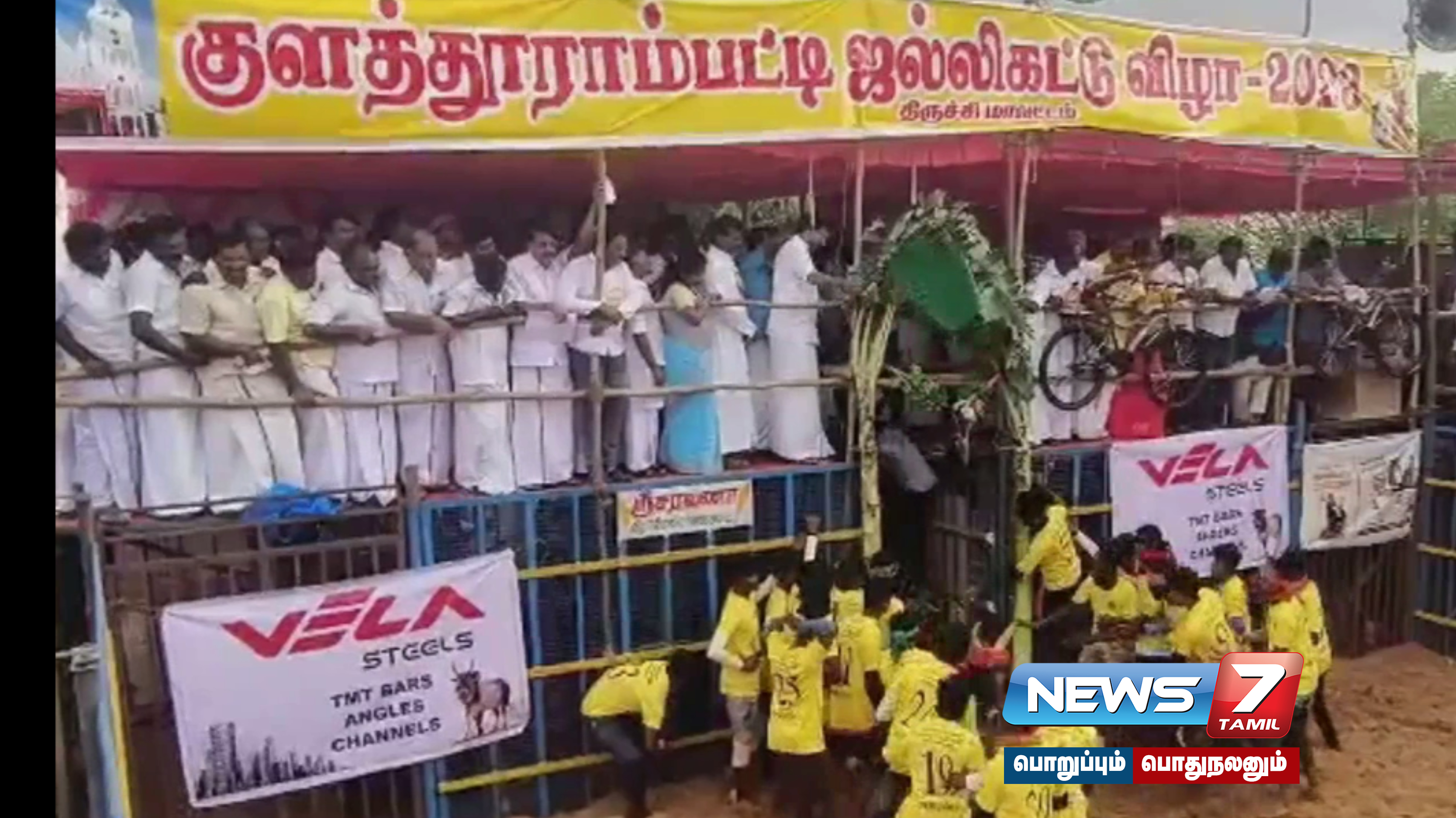மணப்பாறையை அடுத்த குளத்தூராம்பட்டி புனித அந்தோணியர் பொங்கல் விழாவினை முன்னிட்டு, புனித சூசையப்பர் பேராலயத்திடலில் ஜல்லிக்கட்டு போட்டி நடைபெற்றது . சுமார் 700 காளைகளும், 300 காளையர்களும் பங்கேற்ற இந்த ஜல்லிக்கட்டு போட்டியினைப் பள்ளிக்கல்வித்துறை அமைச்சர் அன்பில் மகேஷ் பொய்யாமொழி தொடக்கி வைத்தார்.