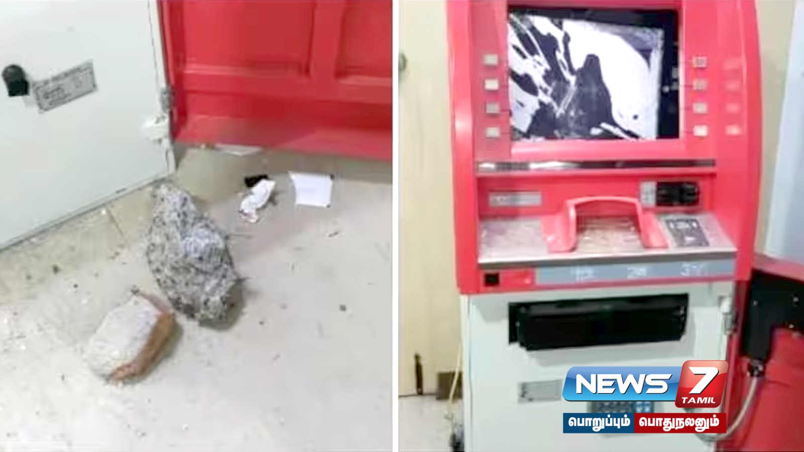 இதனையடுத்து ரோந்து போலீசார் ஏ.டி.எம் மையம் அருகே வந்த போது கொள்ளை முயற்சியில் ஈடுபட்ட மர்ம நபர்கள் கற்களை அங்கேயே போட்டுவிட்டு தப்பிச் சென்றனர். இது குறித்து போலீசார் சி.சி.டி.வி காட்சிகளை ஆய்வு செய்து அவர்களை தேடி வருகின்றனர்.