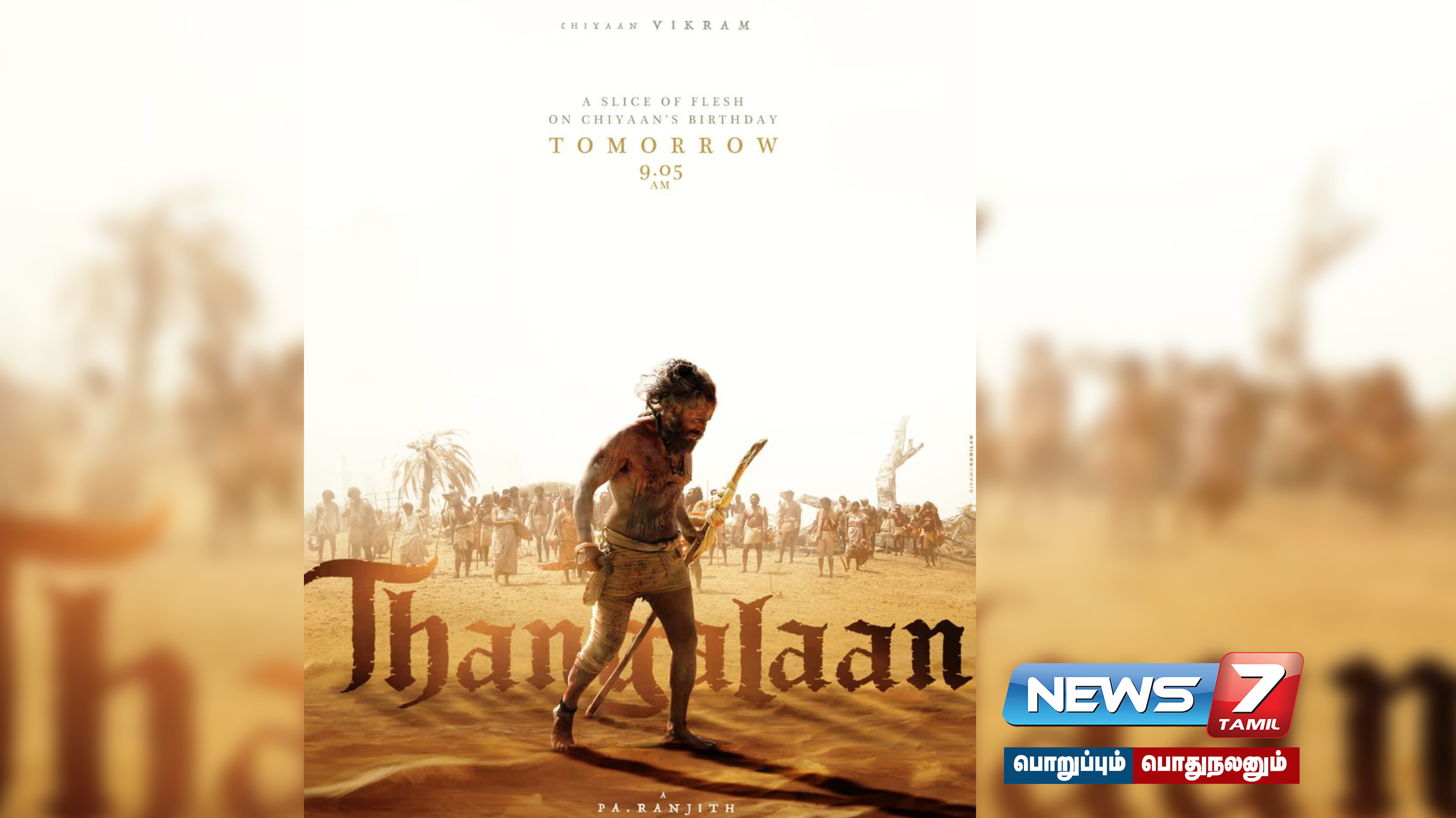 நடிகர் விக்ரம் நடித்து வெளியாகவுள்ள தங்கலான் படத்தின் அடுத்த அப்டேட் நாளை வெளியாகும் என படக்குழு அறிவித்துள்ளது.