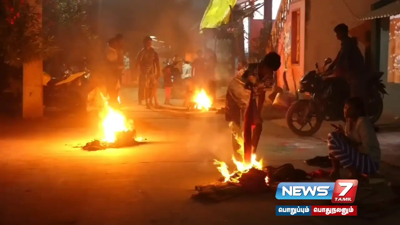 பிளாஸ்டிக்கை தவிர்த்து பழைய பொருட்களை தீயிலிட்டு எரித்து பொதுமக்கள்