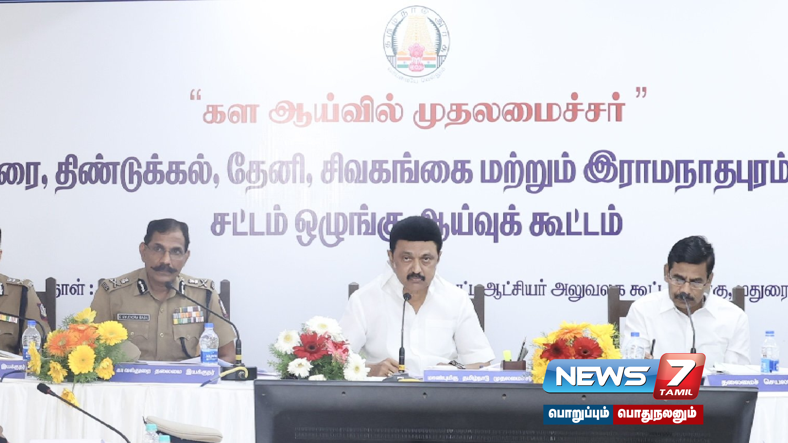 மதுரையில் ஐந்து மாவட்ட ஆட்சித்தலைவர்களுடன் முதலமைச்சர் மு.க.ஸ்டாலின் ஆய்வு கூட்டம் நடத்தி வருகிறார். மதுரை மாவட்ட ஆட்சியர் அலுவலகத்தில் முதலமைச்சர் தலைமையில் ஆய்வு நடபெற்று வருகிறது. தலைமை செயலாளர் மற்றும் ஐந்து மாவட்டத்தை சேர்ந்த மாவட்ட ஆட்சித்தலைவர்கள் ஆய்வுக் கூட்டத்தில் பங்கேற்றனர்.