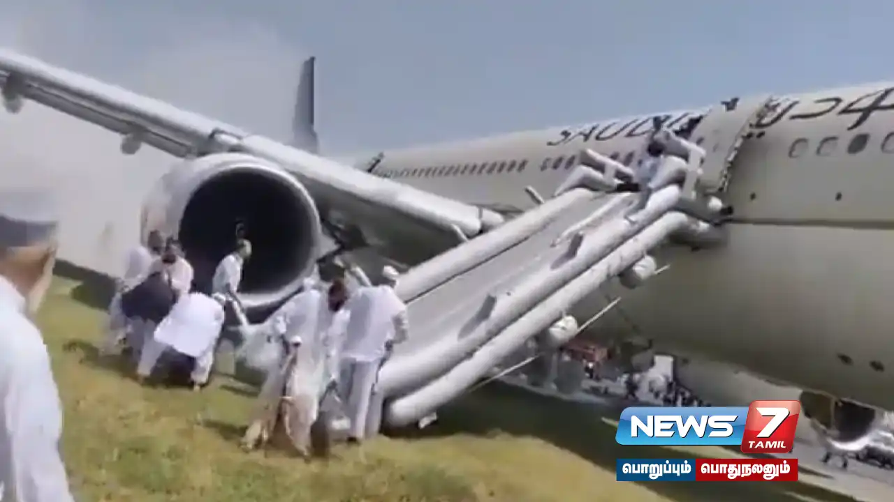 சவூதி விமானம் பாகிஸ்தான் விமான நிலையத்தில் தரையிறங்கியபோது விமானத்தில் தீப்பிடித்ததால் அதிலிருந்த அனைவரும் அவசரமாக வெளியேற்றப்பட்டனர்.