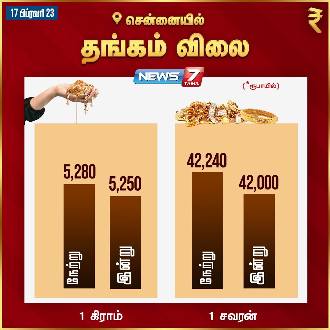 இந்நிலையில் ஆபரண தங்கத்தின் விலை இன்று சற்று குறைதுள்ளது. சென்னையில் 22 கேரட் ஆபரணத் தங்கத்தின் விலை சவரனுக்கு ரூ.240 குறைந்து ரூ.42,000க்கு விற்பனை செய்யப்படுகிறது.