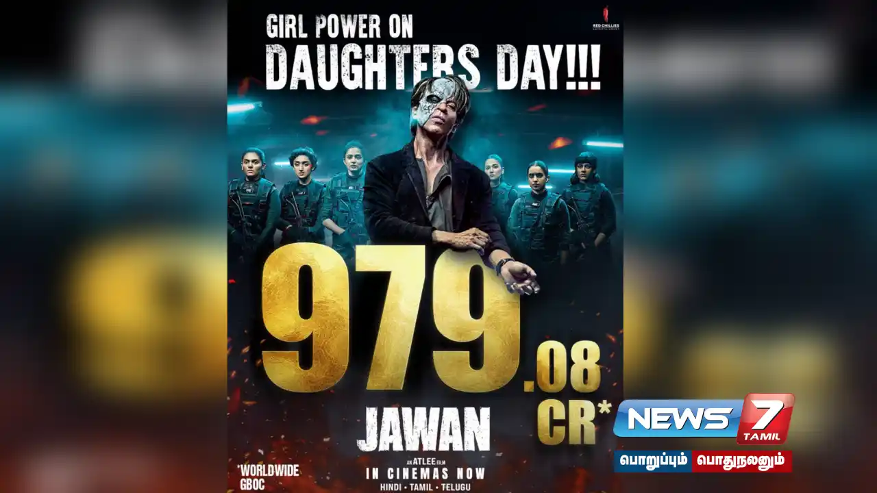 இந்நிலையில், ஜவான் திரைப்படத்தின் வசூல் 979 கோடி ரூபாயை தாண்டியுள்ளதாக தயாரிப்பு நிறுவனம் அறிவித்துள்ளது. அதோடு உலக மகள்கள் தினத்தை கொண்டாடும் விதமாக ஜவான் திரைப்படத்தில் முக்கிய கதாபாத்திரம் ஏற்று நடித்துள்ள கதாநாயகிகள் புகைப்படத்துடன் போஸ்டர் வெளியிட்டுள்ளது அத்திரைப்படத்தின் தயாரிப்பு நிறுவனம்.