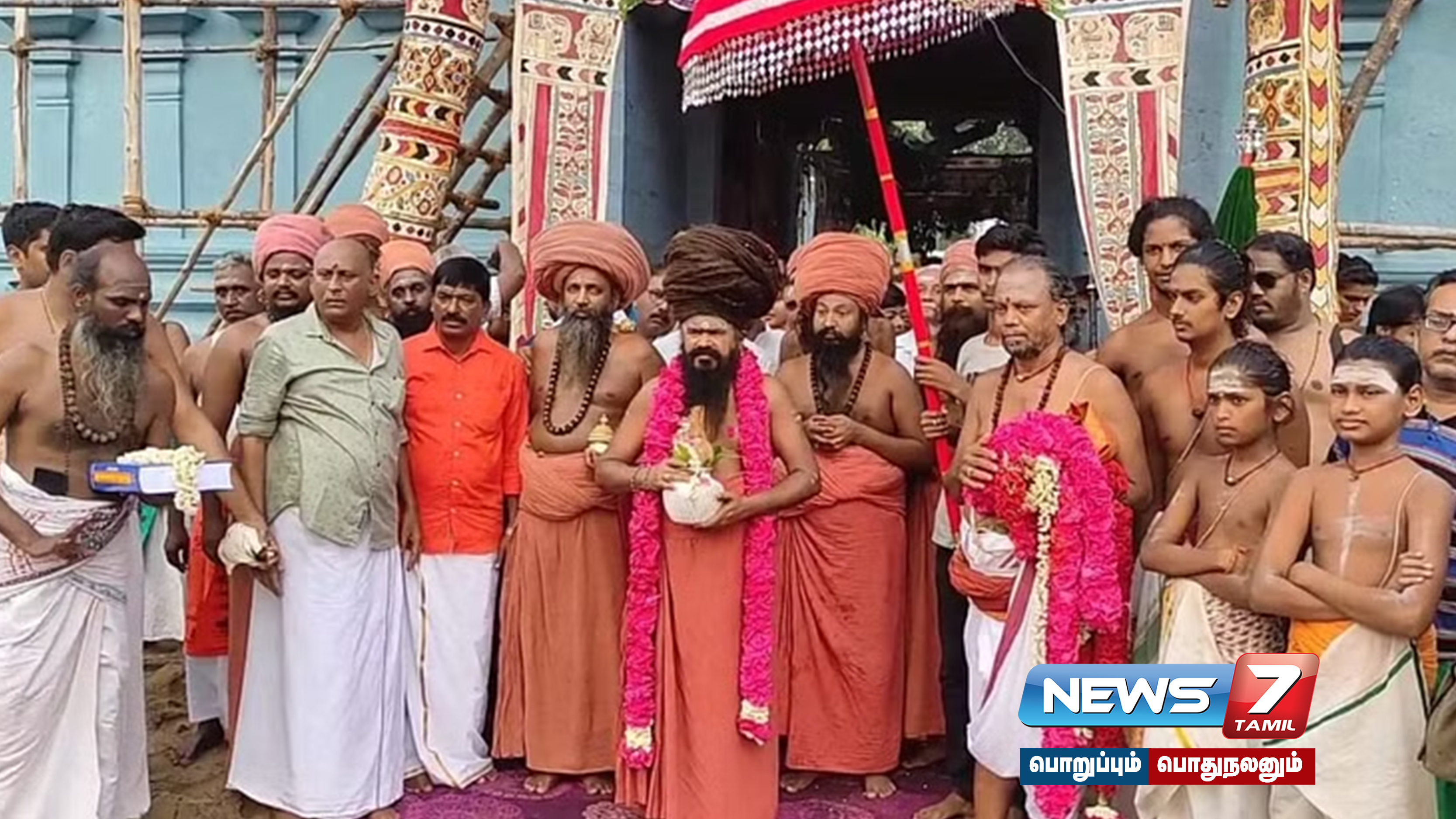 ஊர்வலமாக எடுத்து வரப்பட்டது. முன்னதாக பசு, யானை, ஒட்டகம், குதிரை ஆகியவைகளும் ஊர்வலமாக வந்தது. தொடர்ந்து தருமபுரம் ஆதீனம் 27வது குரு மகா சன்னிதானம் ஸ்ரீலஸ்ரீ மாசிலாமணி தேசிக ஞானசம்பந்த பரமாச்சாரியார் சுவாமிகள்