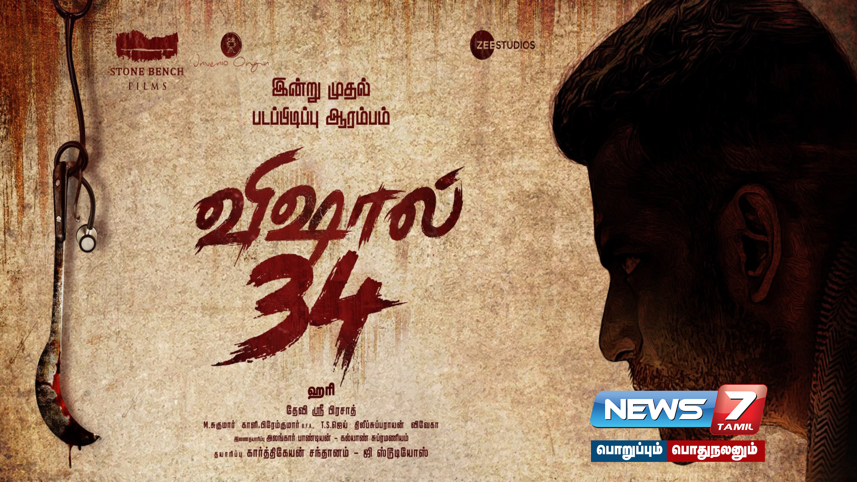 ‘தாமிரபரணி’, ‘பூஜை’ போன்ற படங்களில் வெற்றி கூட்டணியான விஷால் மற்றும் இயக்குநர் ஹரியை மீண்டும் இணைத்து ஸ்டோன்பெஞ்ச் ஃபிலிம்ஸ் மற்றும் ஜீ ஸ்டுடியோஸ் சவுத் இணைந்து புதிய படத்தை தயாரிக்கிறது. எம்.சுகுமார் ஒளிப்பதிவில், திலீப் சுப்பராயன் சண்டைப் பயிற்சியளிக்க பாடலாசிரியர் விவேக் பாடல் எழுத உள்ளார். இசையமைப்பாளர் தேவி ஸ்ரீ பிர்சாந்த் இசையமைக்க உள்ளதும் குறிப்பிடத்தக்கது.