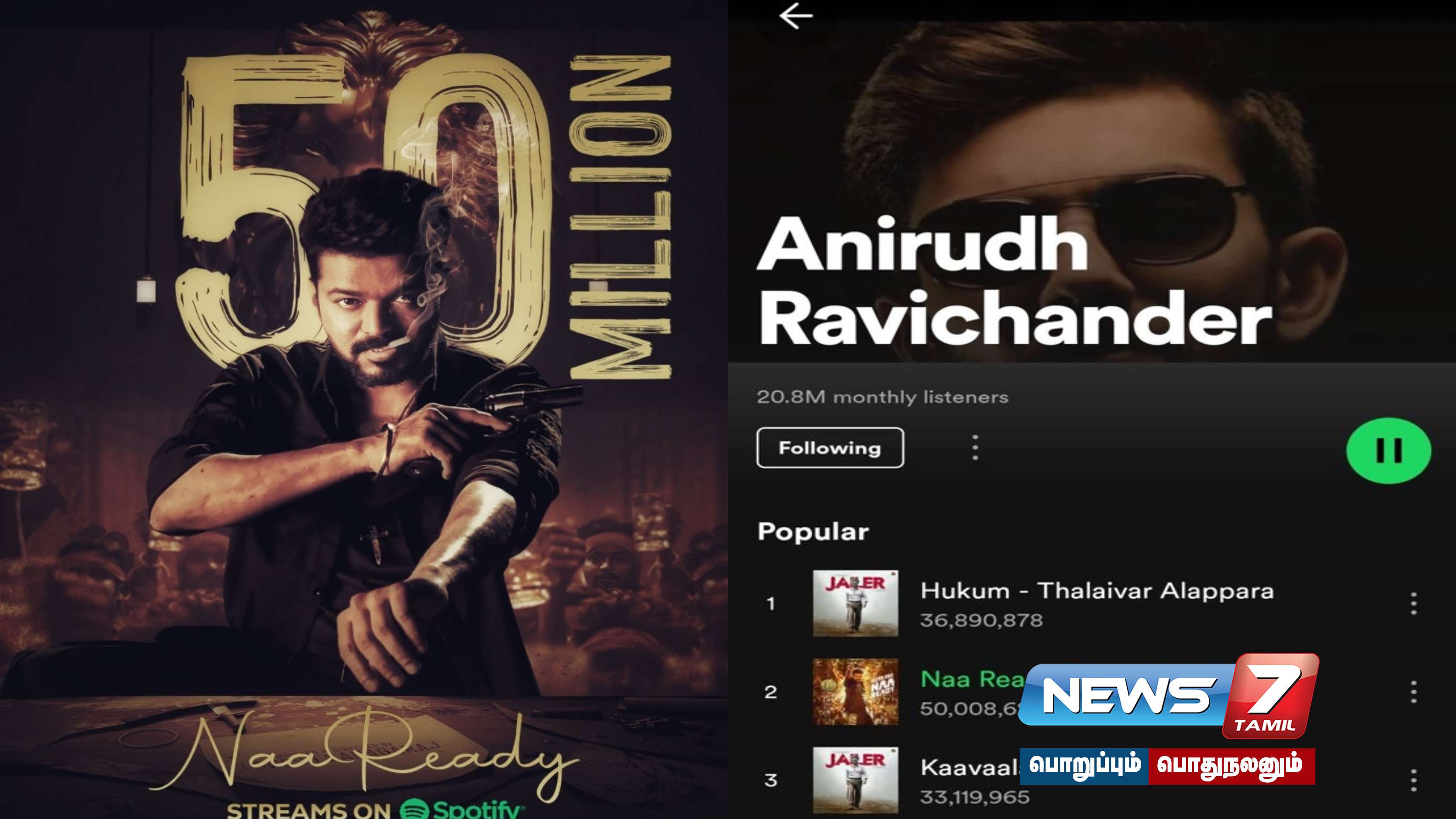 நடிகர் விஜய், இயக்குநர் லோகேஷ் கனகராஜ் கூட்டணியில் உருவாகி வரும் லியோ திரைப்படத்தின் நா ரெடி தா பாடல் ஸ்பாட்டிபை செயலியில் 5 கோடிக்கு மேல் ஸ்டிரீம் செய்யப்பட்டுள்ளது.
