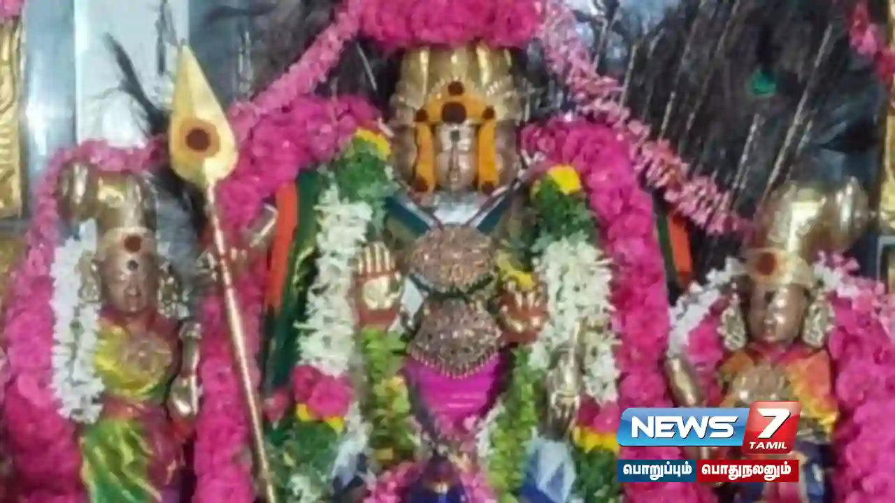 தொடர்ந்து மூலவர் சன்னதியில் இருந்து கோயில் ஸ்தானிகபட்டர் வைர கற்கள் பதிக்கப்பட்ட வேலை பக்தர்களின் அரோக கோஷம் முழங்க சகல பரிவாரங்களோடு கையில் ஏந்தி வந்தார். பின்னர் பக்தர்களின் அரோகரா முழக்கம் விண்ணை பிளக்க தாய் கோவர்த்தனாம்பிகையிடம் இருந்து சுப்பிரமணிய சுவாமி
