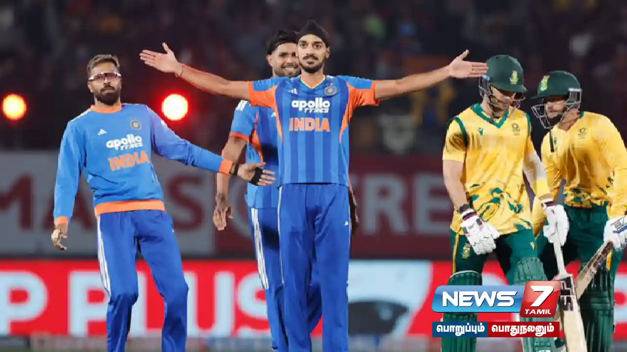 இதனையடுத்து, முதலில் பேட்டிங் செய்த தென் ஆப்பிரிக்கா அணி 20 ஓவர்கள் முடிவில் அனைத்து விக்கெட்டுகளையும் இழந்து 117 ரன்கள் எடுத்துள்ளது. அந்த அணியில் அதிகபட்சமாக ஐடன் மார்க்ரம் 46 பந்துகளில் 61 ரன்கள் சேர்த்தார். இந்திய அணி தரப்பில் அர்ஷ்தீப் சிங், ஹர்ஷித் ராணா, வருண் சக்கரவர்த்தி, குல்தீப் யாதவ் ஆகியோர் தலா இரண்டு விக்கெட்டுகளை வீழ்த்தினர்.