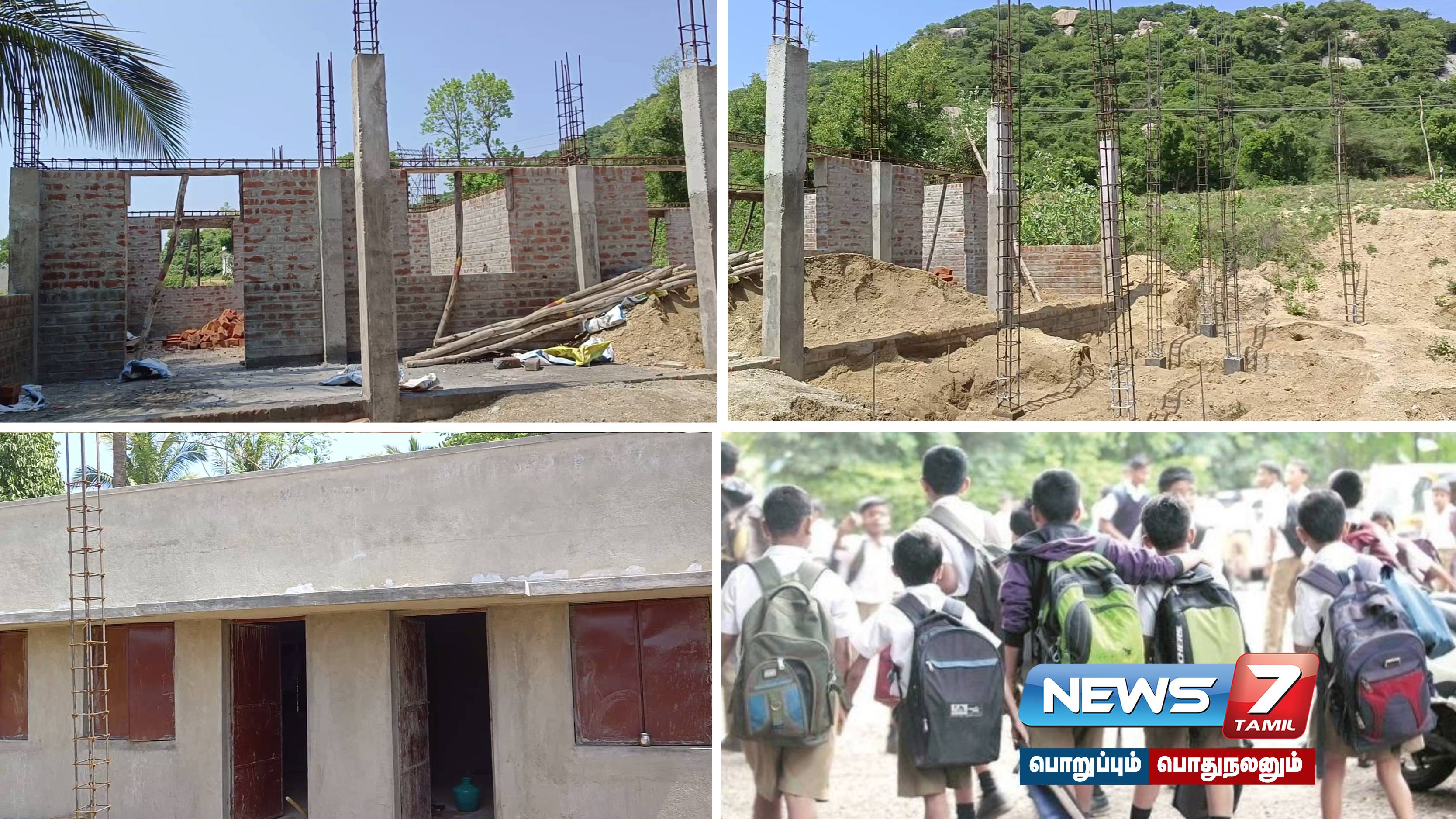 திருப்பத்தூர் வெலக்கல் நத்தம் அடுத்த செட்டேரி டேம் பகுதியில் ஊராட்சி ஒன்றிய தொடக்கப்பள்ளி கடந்த 20 ஆண்டு காலமாக வாடகை கட்டிடத்தில் செயல்பட்டு வந்தது. இது குறித்த செய்தி நியூஸ் 7 தமிழில் வெளியானது. இதனையடுத்து கடந்த ஆண்டு புதிய கட்டடம் கட்டுவதற்கு அரசுக்கு சொந்தமான இடம் தேர்வு செய்யப்பட்டு ஒப்பந்த அடிப்படையில் கட்டுமான பணிக்கு நடவடிக்கை எடுக்கப்பட்டது.