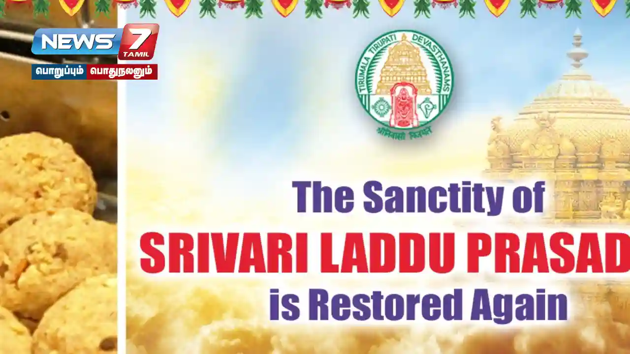 திருப்பதி லட்டுவின் புனிதத்தை மீட்டுவிட்டோம் என திருப்பதி திருமலா தேவஸ்தானம் அறிவித்துள்ளது.