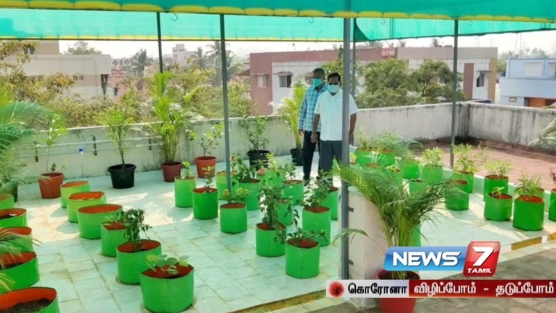விழிப்புணர்வுகள் ஏற்படுத்தப்பட்டு வருகின்றன. அந்த வகையில் மரம் வளர்ப்பு மற்றும் சுற்றுச்சூழலை பாதுகாப்பு உள்ளிட்டவற்றை வலியுறுத்தி நகராட்சி ஆணையர் ரமேஷ் தலைமையில் நகராட்சி அலுவலகத்தில் மாடித் தோட்டம் அமைக்கப்பட்டுள்ளது.