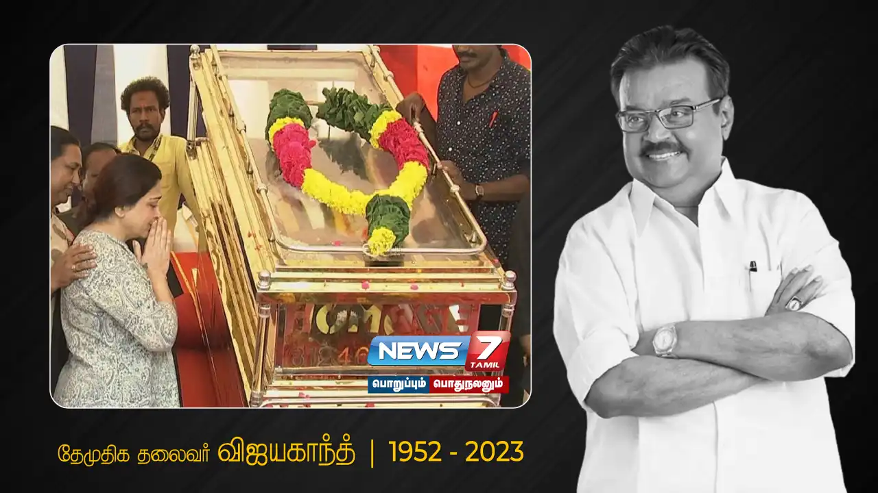 நடிகரும், தேமுதிக தலைவருமான விஜயகாந்த் நேற்று காலை 9:30 மணி அளவில் உயிரிழந்ததாக மருத்துவமனை அதிகாரப்பூர்வமாக அறிவித்தது. இதனைத் தொடர்ந்து சாலிகிராமத்தில் உள்ள அவரது வீட்டில் அஞ்சலிக்காக அவரது உடல் வைக்கப்பட்டது. இதன் பின்னர் கோயம்பேட்டில் உள்ள தேமுதிக தலைமை அலுவலகத்தில் பொதுமக்கள் அஞ்சலிக்காக வைக்கப்பட்டது. தேமுதிக அலுவலகத்தில் விஜயகாந்த் உடலுக்கு திரை பிரபலங்கள் நேரில் அஞ்சலி செலுத்தினர்.
