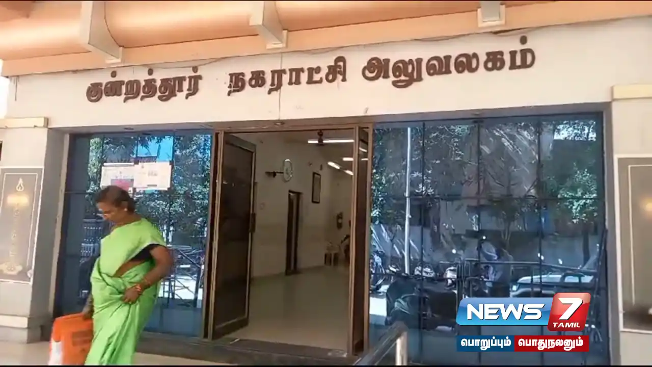 குன்றத்தூர் நகராட்சி அலுவலகத்தில் நிலத்தை வரன்முறை செய்ய லஞ்சம் கேட்டதாக லஞ்ச ஒழிப்பு போலீசாருக்கு புகார் வந்துள்ளது. இதனை அடுத்து சம்பந்தப்பட்ட நபர் லஞ்ச ஒழிப்பு போலீசாரின் அறிவுறுத்தலின் பேரில் ரசாயனம் தடவிய ரூபாய் நோட்டுகளை லஞ்சமாக கொடுத்து நிலம் வரன்முறை ஆவணம் தருமாறு கேட்டிருக்கிறார்.