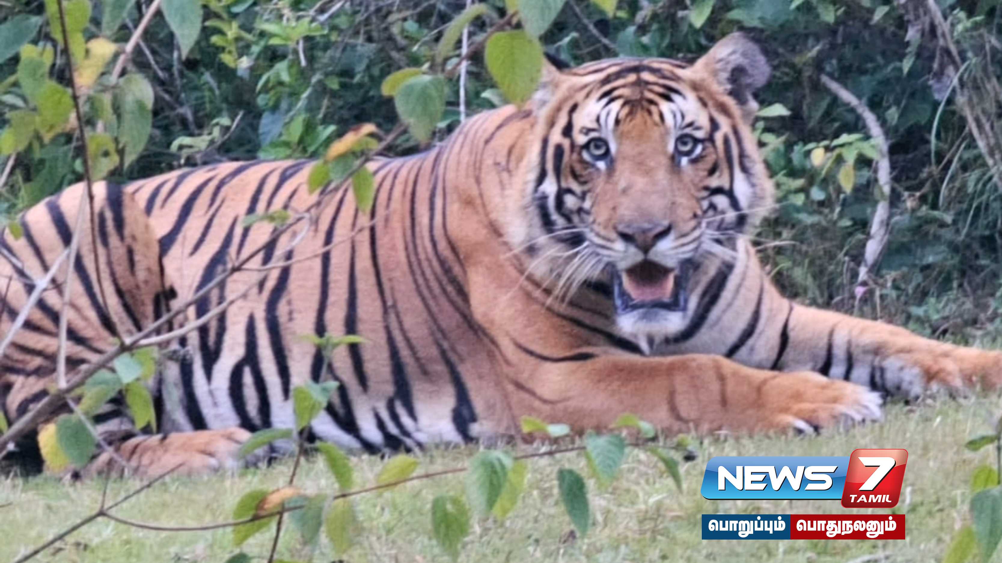 இதனிடையே முதுமலை புலிகள் காப்பகத்திற்கு உட்பட்ட வெளி மண்டல வனப்பகுதியில் அடர்ந்த வனப்பகுதி நடுவே அமைந்துள்ள மசினகுடியில் இருந்து சிங்கார செல்லும் சாலையோரம் உள்ள வனப்பகுதியில் புலி ஒன்று ஜாலியாக ஓய்வு எடுத்துக் கொண்டிருந்தது.அப்போது அவ்வழியாக சென்ற வாகன ஓட்டிகள் தங்கள் வாகனங்களில் இருந்தபடி புலியை கண்டு ரசித்தோடு மட்டுமல்லாமல் வீடியோ புகைப்படங்கள் எடுத்து மகிழ்ந்தனர். இதனிடையே வனப்பகுதியில் ஓய்வு எடுத்துக் கொண்டிருந்த புலி பின்னர் மெதுவாக மீண்டும் அடர்ந்த வன பகுதிக்குள் சென்று மறைந்தது.