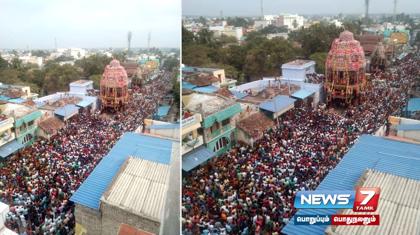 அதனை தொடர்ந்து ஏராளமான பக்தர்கள் ‘அரோகரா’ கோசத்துடன் தேரை வடம் பிடித்து இழுத்தனர். இதையடுத்து தேர் ரதவீதி நான்கிலும் பவனி வந்து நிலையம் வந்து சேர்ந்தது.