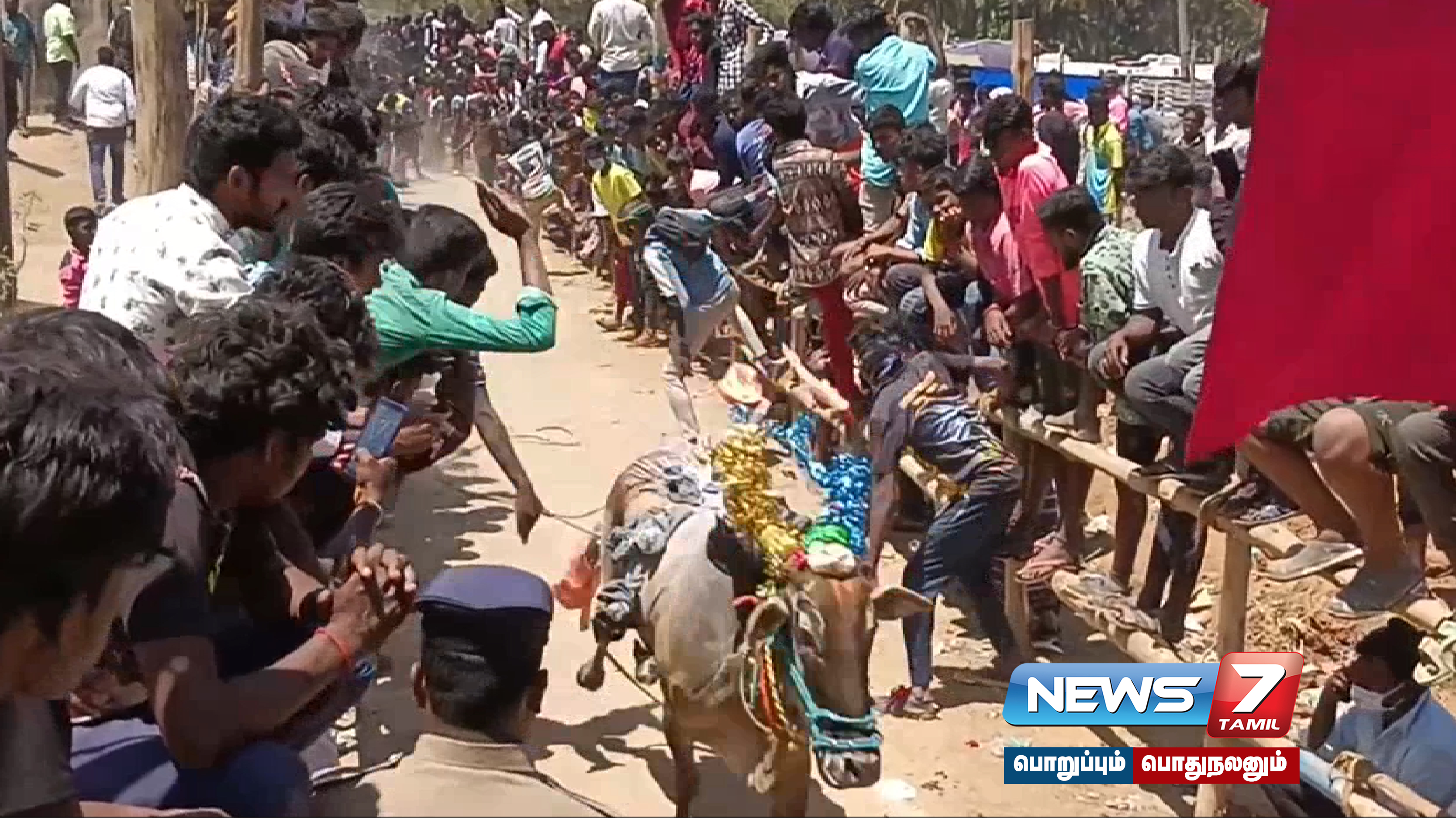 திருப்பத்தூர் மாவட்டம் ஆம்பூர் பகுதியில் மாரியம்மன் கோவில் திருவிழாவை முன்னிட்டு 30ம் ஆண்டு எருது விடும் விழா வெகு விமர்சையாக நடைபெற்றது.