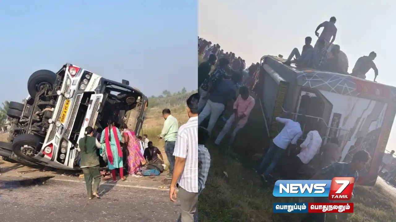 திருப்பூர் புதிய பேருந்து நிலையத்தில் இருந்து ஈரோடு நோக்கி நேற்று காலை 8.30 மணியளவில் தனியார் பேருந்து புறப்பட்டது. இந்த பேருந்தில் 60க்கும் மேற்பட்டோர் பயணம் செய்தனர். ஊத்துக்குளி அருகே செங்கப்பள்ளி பகுதியில் தேசிய நெடுஞ்சாலையில் சரக்கு லாரியை முந்திச் செல்ல முயன்றபோது, கட்டுப்பாட்டை இழந்த பேருந்து சாலையில் கவிழ்ந்து விபத்துக்குள்ளானது.