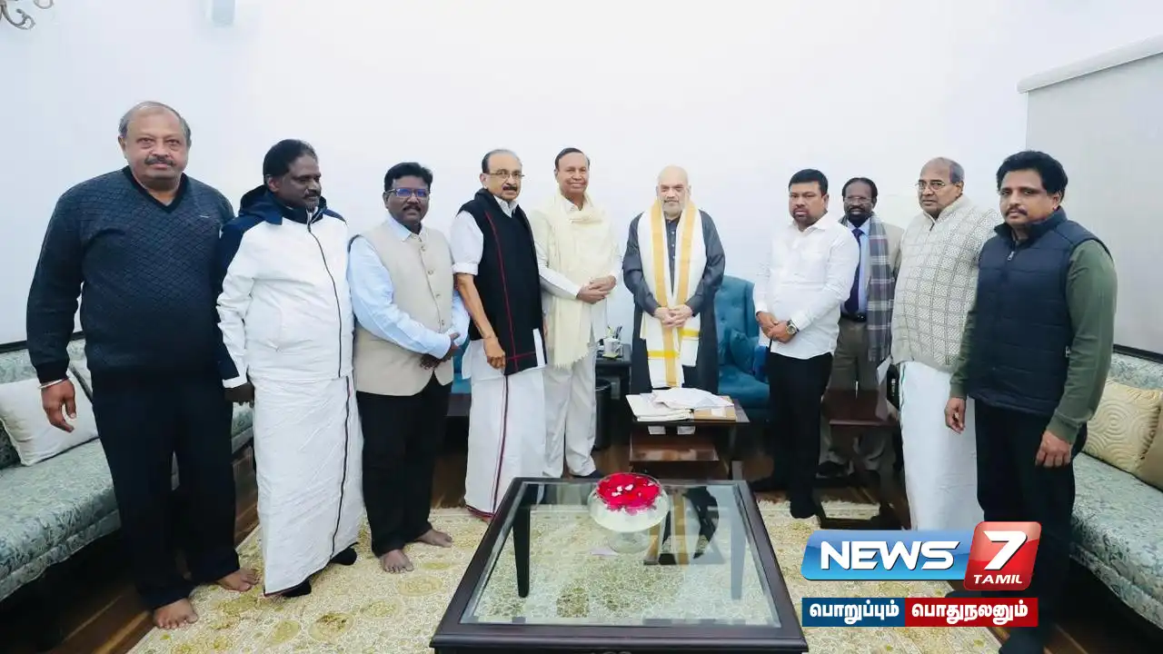 வெள்ள நிவாரணத் தொகையை உடனடியாக ஒதுக்கீடு செய்ய வலியுறுத்தி தமிழ்நாடு நாடாளுமன்ற உறுப்பினர்கள் உள்துறை அமைச்சரை மத்திய உள்துறை அமைச்சர் அமித்ஷாவை சந்தித்தனர்.