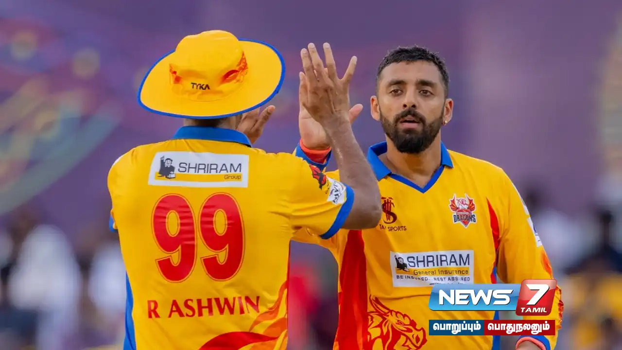 இதனையடுத்து திண்டுக்கல் அணியின் தொடக்க ஆட்டக்காரர்களாக கேப்டன் ரவிச்சந்திரன் அஸ்வின் மற்றும் ஷிவம் சிங் ஆகியோர் களமிறங்கினர். இதில் அஸ்வின் 5 ரன்னிலும் அடுத்து வந்த விமல் குமார் 9 ரன்னிலும் வெளியேறினர். இதையடுத்து தொடக்க ஆட்டக்காரர் ஷிவம் சிங்குடன், பாபா இந்திரஜித் ஜோடி சேர்ந்தார்.