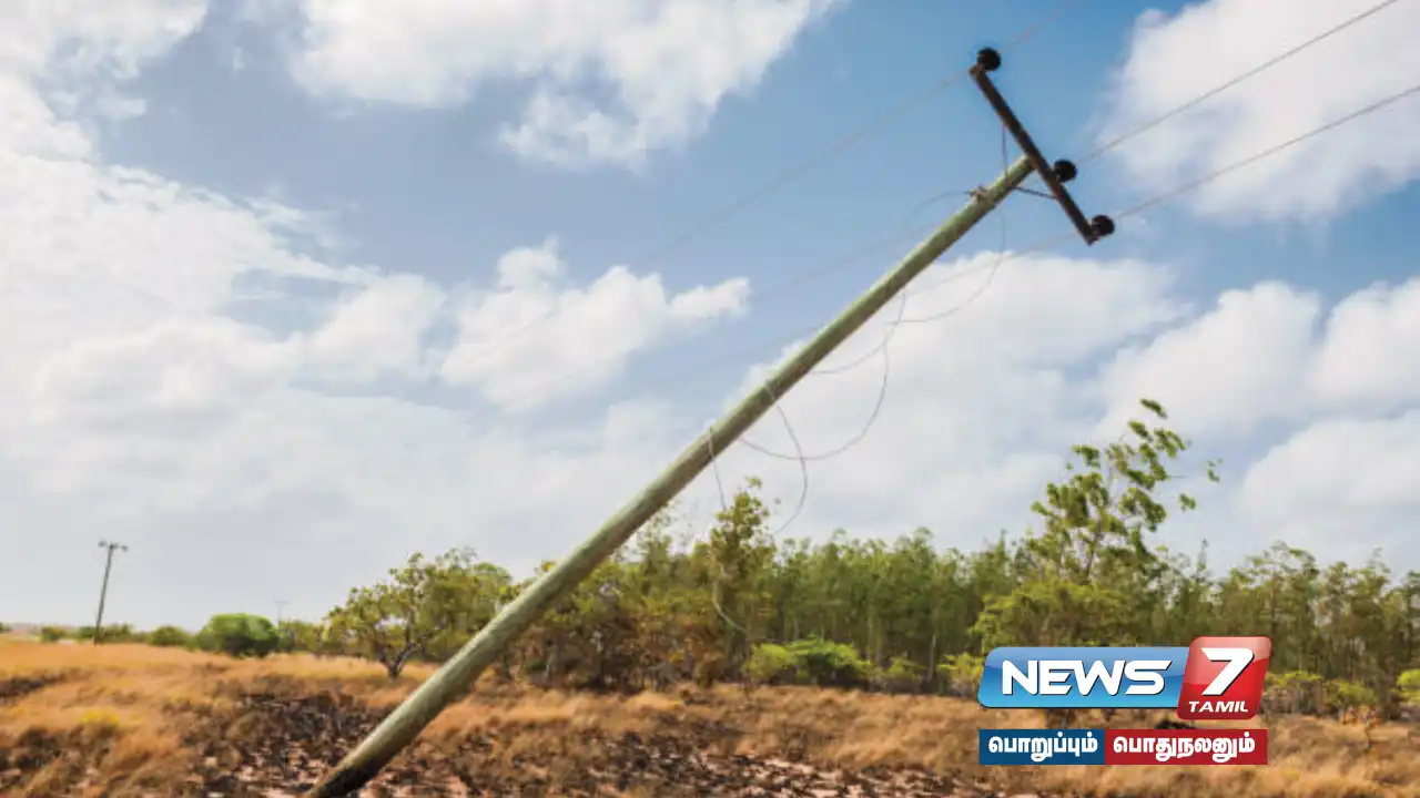 மின் கம்பங்கள் உடைந்திருந்தாலோ, சாய்ந்திருந்தாலோ 94987 94987 என்ற அலைபேசி எண் மூலம் தொடர்பு கொண்டு தகவல் தெரிவிக்கலாம் என்று தமிழ்நாடு அரசு தெரிவித்துள்ளது.