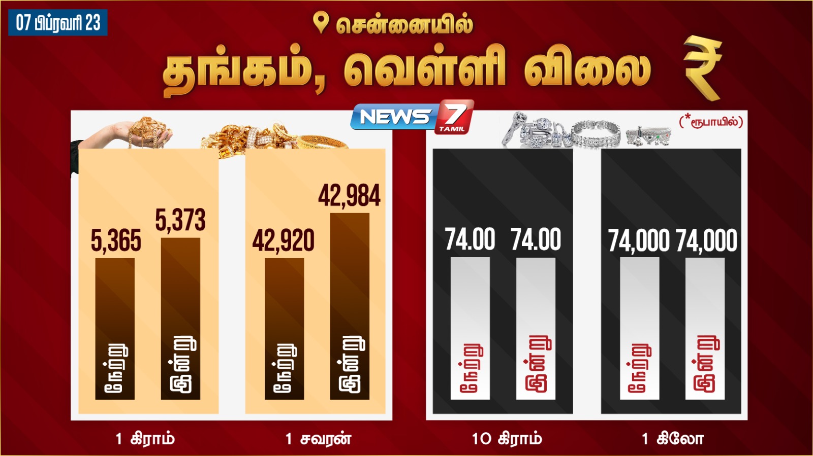 வெள்ளி விலையில் எந்த மாற்றமும் இல்லை. கிராம் ஒன்றுக்கு 74.00 ரூபாய்க்கு விற்கப்படுகிறது. அதே போல ஒரு கிலோ வெள்ளி விலை 74,000 ரூபாய்க்கு விற்பனை செய்யப்பட்டு வருகிறது.