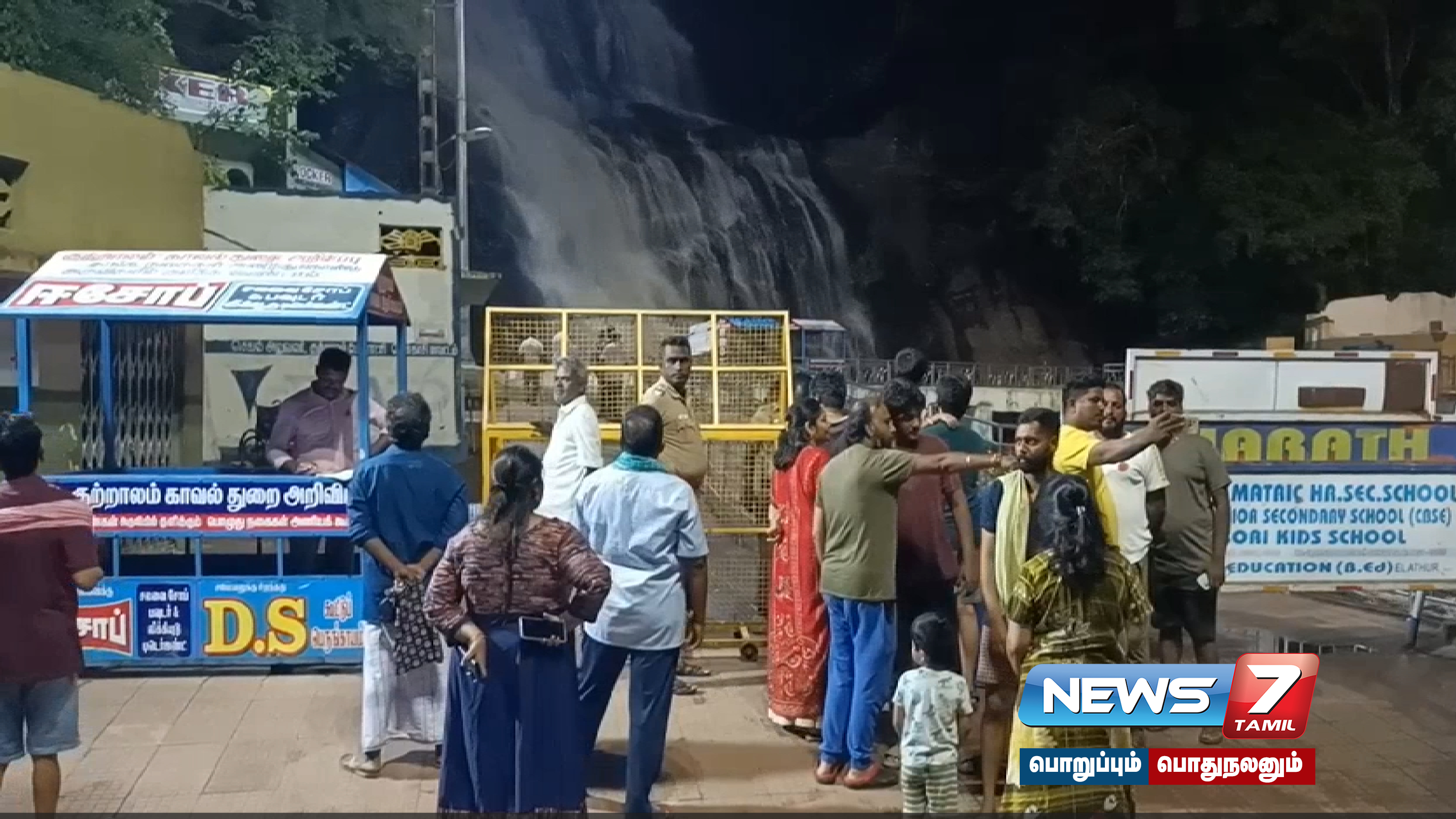 கடந்த சில தினங்களாக வெயில் அதிகமாக இருந்து வந்த நிலையில், நேற்று மாலையிலிருந்து தொடர்ந்து சாரல் மழை பெய்தது. இதன் காரணமாக ஐந்தருவி, மெயின் அருவி, பழைய குற்றாலம் உள்ளிட்ட அனைத்து அருவிகளிலும் தண்ணீர் வர தொடங்கியது. தண்ணீர் சீராக வந்த நிலையில், கன மழை காரணமாக அனைத்து அருவிகளிலும் வெள்ளப்பெருக்கு ஏற்பட்டுள்ளது. இதனால் சுற்றுலா பயணிகள் பாதுகாப்பு கருதி குளிக்க காவல்துறையினர் தடை விதித்தனர்.