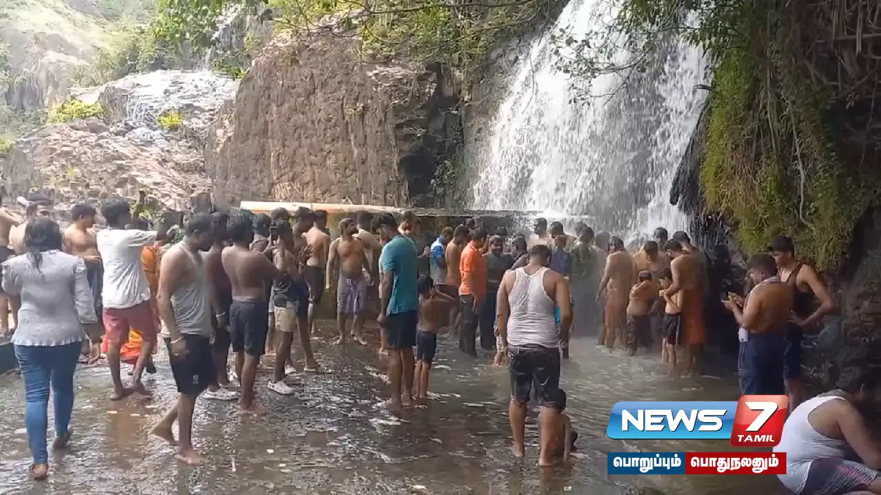 வனத்துறையினர் பரிசோதனை செய்தனர். வனத்துறையினரின் தீவிர சோதனைக்கு பிறகே அருவிக்கு செல்ல சுற்றுலா பயணிகள் அனுமதிக்கப்பட்டனர்.