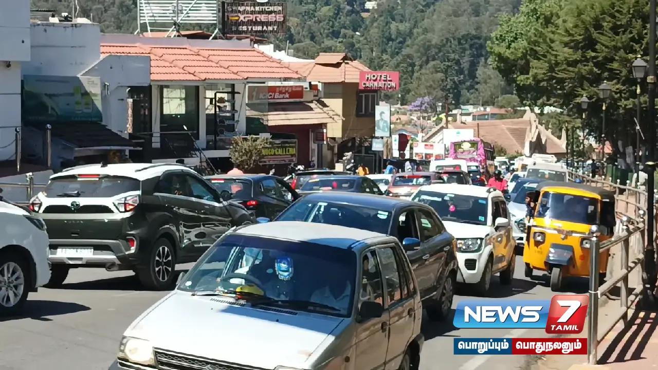 உதகையில் ஒரே நாளில் குவிந்த ஏராளமான சுற்றுலாப் பயணிகளால் கடும் போக்குவரத்து நெரிசல் ஏற்பட்டுள்ளது.