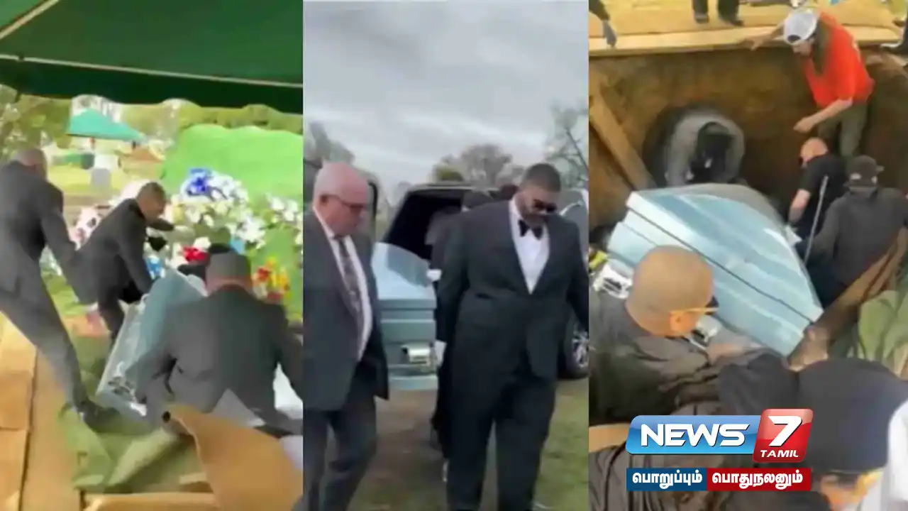 அமெரிக்காவின் பிலடெல்பியாவைச் சேர்ந்தவர் பெஞ்சமின் அவிலின். இதய நோயால் பாதிக்கப்பட்டிருந்த அவர் கடந்த மார்ச் 21ம் தேதி உயிரிழந்தார். இதனையடுத்து, அவரது குடும்பத்தினர் அவரின் இறுதிச்சடங்குக்கான ஏற்பாடுகளை செய்தனர். குடும்ப உறுப்பினர்கள் இறுதிச் சடங்கிற்காக சவப்பெட்டியை கல்லறை நோக்கி எடுத்துச் சென்றனர். அப்போது, கல்லறை மேடை இடிந்து விழுந்ததில் சவப்பெட்டியுடன் சேர்ந்து பலரும் கல்லறைக்குள் விழுந்தனர்.