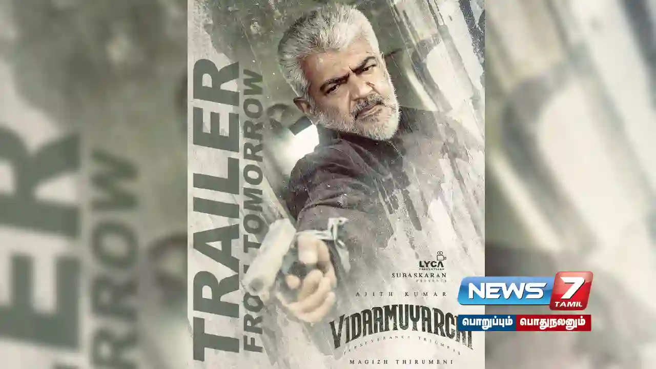 The much awaited VIDAAMUYARCHI Trailer is releasing tomorrow. 🤩 Get ready to witness the power of persistence! 💪 #PodraVediye 💥#Vidaamuyarchi #EffortsNeverFail#AjithKumar #MagizhThirumeni @LycaProductions #Subaskaran @gkmtamilkumaran @trishtrashers @akarjunofficial… pic.twitter.com/aC4gTzwG8Q