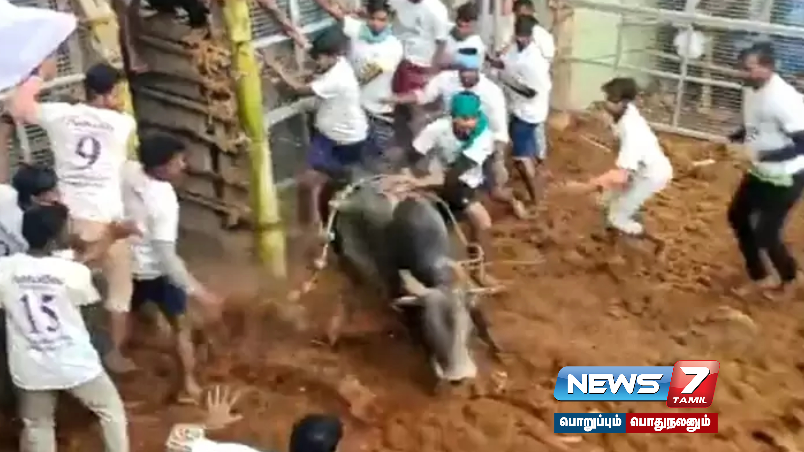 வாடிவாசல் வழியே திமிறி சீறி பாய்ந்த காளைகள் காளையர்களைக் கலங்கடித்த நிலையில் நின்று விளையாடியது. சில காளையர்கள் தொட்டுக் கூட பார்க்க முடியாதபடி சீறி பாய்ந்தது. இருப்பினும் சில காளைகளை வீரர்கள் திமில் பிடித்துத் தழுவினர்.