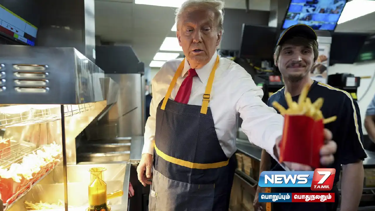அமெரிக்காவின் முன்னாள் அதிபர் டொனால்ட் ட்ரம்ப், ஃபிரெஞ்ச் ஃபிரைஸ் செய்யும் வீடியோ இணையத்தில் வைரலாகி வருகிறது.