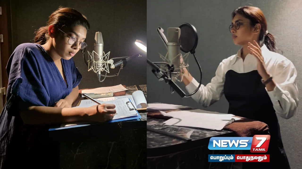 அண்மையில் வெளியான ‘ராயன்’ திரைப்படத்தில் சிறப்பான நடிப்பை வெளிப்படுத்தி மக்கள் மனதில் இடம் பிடித்தார் துஷாரா விஜயன். ‘வேட்டையன்’ திரைப்படத்திலும் முக்கியமான கதாப்பாத்திரத்தில் நடித்துள்ளார் துஷாரா. ‘வேட்டையன்’ திரைப்படத்திற்கான டப்பிங் பணிகளை துஷாரா முடித்துள்ளார். திரைப்படத்தின் தயாரிப்பு நிறுவனமான லைகா ப்ரொடக்ஷன்ஸ் துஷாராவின் ஆர்வத்தையும் முயற்சியையும் பாராட்டும் வகையில் அவர் டப்பிங் செய்யும் போது எடுக்கப்பட்ட புகைப்படத்தை பகிர்ந்துள்ளனர்.