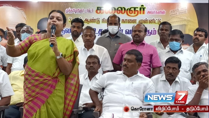 தூத்துக்குடி மாவட்டம் விளாத்திகுளத்தில் மறைந்த முன்னாள் முதலமைச்சர் கருணாநிதியின் 3வது ஆண்டு நினைவு தினத்தையொட்டி ஏழை, எளிய, பெண்களுக்கு தையல் மிஷின் உள்ளிட்ட நலத்திட்ட உதவிகள் வழங்கும் விழா நடைபெற்றது. இந்நிகழ்ச்சிக்கு விளாத்திகுளம் சட்டப்பேரவை உறுப்பினர் ஜீ.வி. மார்க்கண்டேயன் தலைமை வகித்தார். தூத்துக்குடி வடக்கு மாவட்ட திமுக பொறுப்பாளர், சமூக நலன் மற்றும் மகளிர் உரிமைத்துறை அமைச்சர் கீதாஜீவன் கலந்து கொண்டு ஏழை எளிய நலிவுற்ற பெண்கள், ஆதரவற்ற பெண்கள் உள்ளிட்டோருக்கு ரூபாய் 6 லட்சம் மதிப்பில் தையல் மிஷின்கள் உள்ளிட்ட நலத்திட்ட உதவிகளை வழங்கினார்.