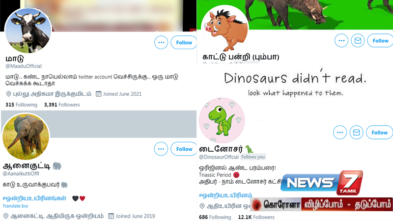 இணையதளத்தில் அனைவரின் கவனத்தயும் ஈர்த்து வருகிறது மாடு, எறும்பு , டைனோசர் பதிவிடும் டீவீட். இந்த வித்தியாசமான ட்விட்டர் பக்கங்களுக்கு அமோக ஆதரவு மக்களிடையே பெருகி வருகிறது.