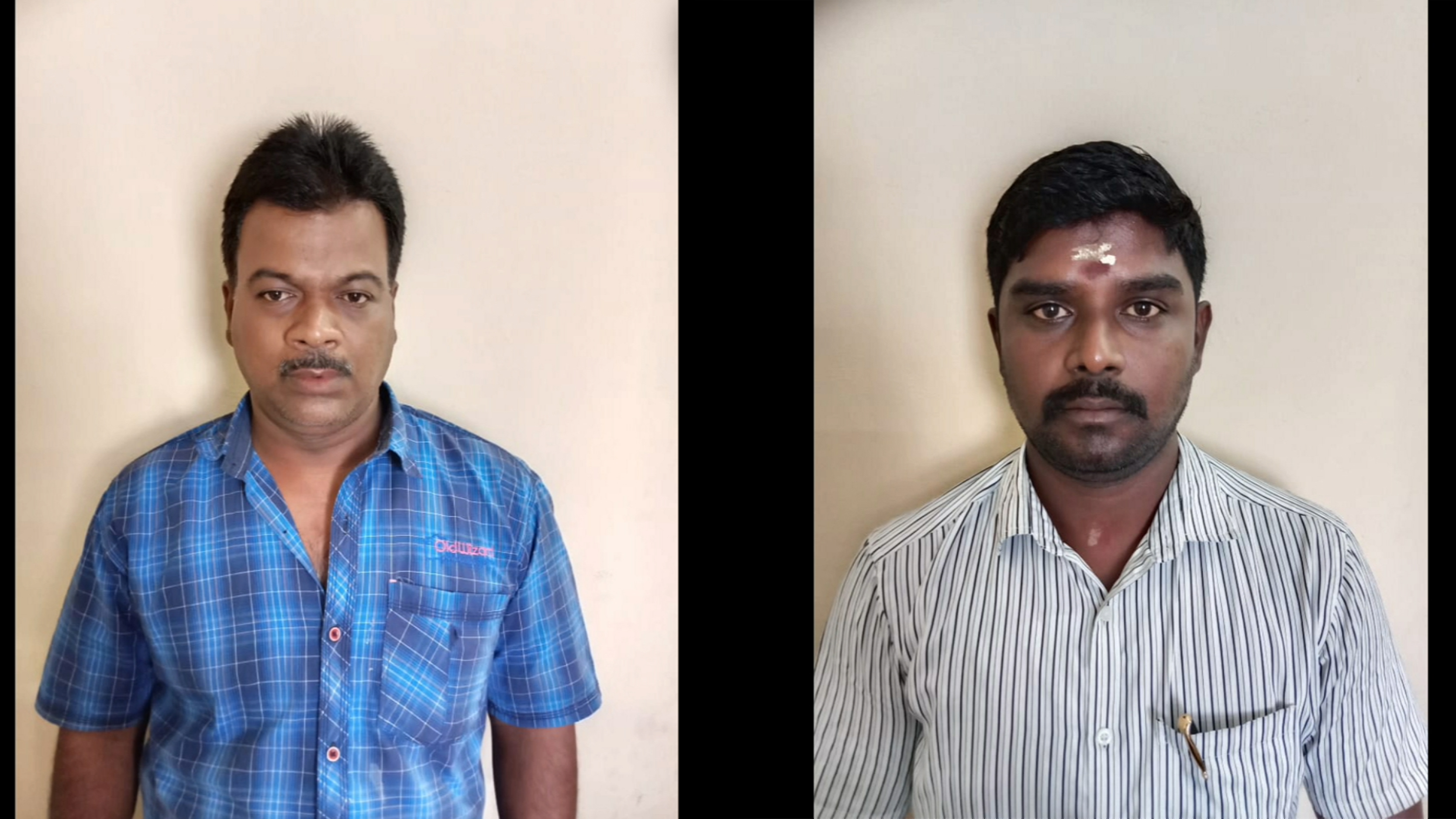 இந்த நிலையில், நேற்று முன்தினம் பனியன் நிறுவனத்தில் புதிதாக தைத்து அனுப்புவதற்காக வைக்கப்பட்டிருந்த 50 பனியன்கள் கொண்ட பண்டல் ஒன்று திருட்டு போனது. இதையடுத்து பனியன் கம்பெனி நிர்வாகிகள் கண்காணிப்பு கேமராக்களை ஆய்வு செய்தபோது, அதே நிறுவனத்தில் வேலை செய்யும் புதுக்கோட்டையைச் சேர்ந்த ரத்னகுமார் மற்றும் தினேஷ்குமார் ஆகிய இருவர் பனியன்களை திருடியது தெரிய வந்தது.