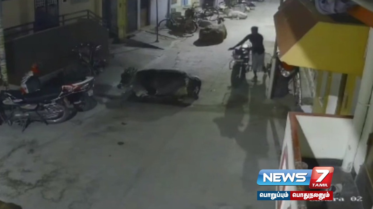 அந்த வீடியோவில் மூன்று பேர் கொண்ட கும்பல் குடியிருப்பு பகுதியில் அங்குமிங்கும் நோட்டமிட்டபடி நடந்து செல்கின்றனர் பின்னர் சைட் லாக் செய்யாத வாகனத்தை நோட்டமிட்டு அதை திருடி செல்வது போன்ற காட்சிகள் பதிவாகி உள்ளது.