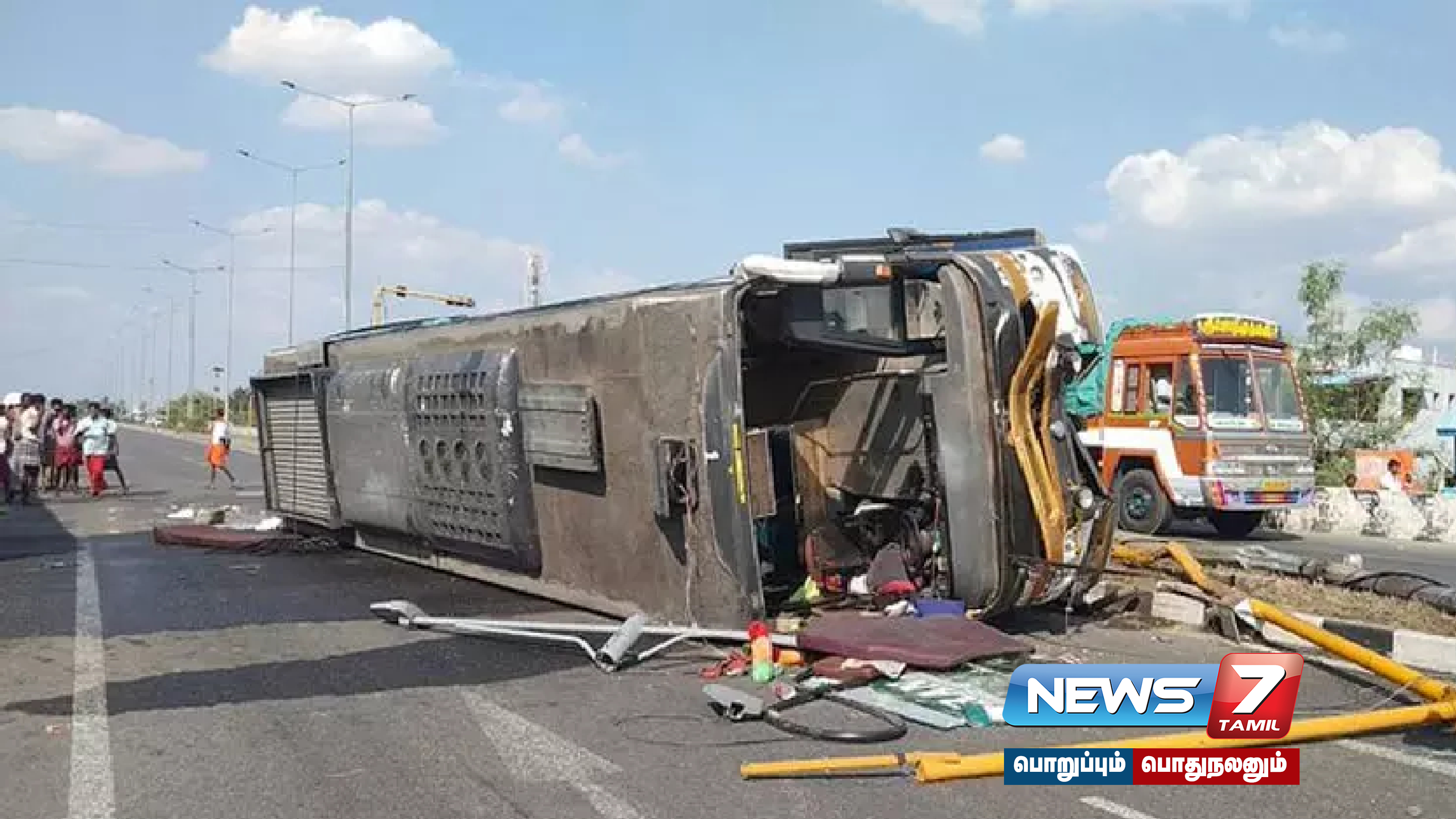 இதில் நிலை தடுமாறிய சொகுசு பேருந்து சாலையின் நடுவே உள்ள தடுப்பு சுவரின் மீது மோதி தல குப்புற கவிழ்ந்து விபத்துக்குள்ளானது. இந்த விபத்தில் 15க்கும் மேற்பட்டோர் பலத்த காயம் அடைந்தனர். இவர்கள் அனைவரும் ஆம்புலன்ஸ் மூலம் உளுந்தூர்பேட்டை அரசு மருத்துவமனையில் சிகிச்சைக்காக அனுமதிக்கப்பட்டுள்ளனர்.