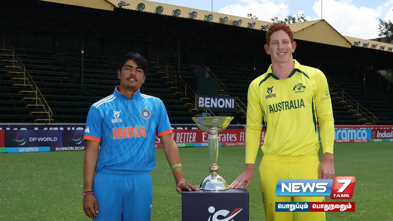 19 வயதுக்குட்பட்டோருக்கான உலகக் கோப்பை இறுதிப்போட்டி நாளை (பிப்ரவரி 11) நடைபெறவுள்ளது. 19 வயதுக்குட்பட்டோருக்கான உலகக் கோப்பை இறுதிப்போட்டியில் இந்தியா மற்றும் ஆஸ்திரேலியா அணிகள் மோதவுள்ளன. இரு அணிகளுக்கும் இடையிலான இந்தப் போட்டி தென்னாப்பிரிக்காவின் பெனோனி மைதானத்தில் இந்திய நேரப்படி நாளை பகல் 1.30 மணிக்குத் தொடங்குகிறது.