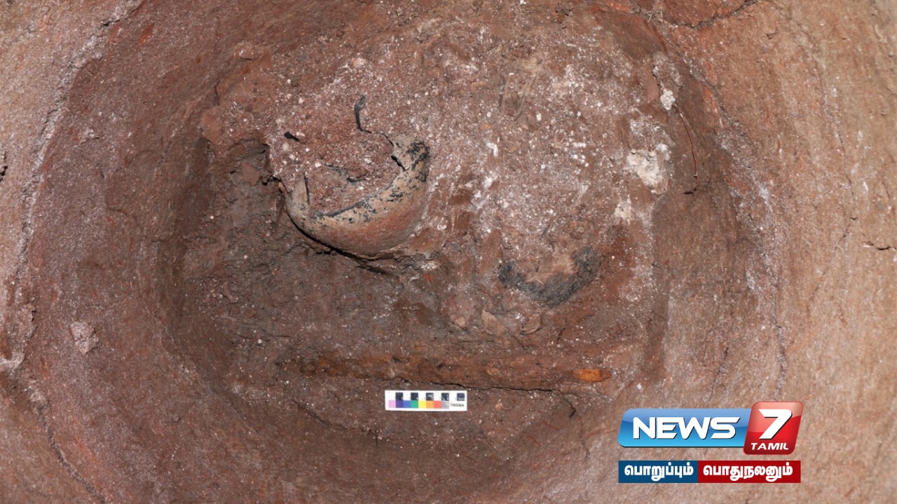 இந்நிலையில் கீழடி அருகே கொந்தகையில் நடைபெற்று வரும் அகழ்வாராய்ச்சியில் கண்டறியப்பட்ட முதுமக்கள் தாளிக்குள் கருப்பு சிவப்பு நிற குவளைகளுடன் 40 செமீ நீளம் கொண்ட இரும்பு வாள் கண்டறியப்பட்டுள்ளது. இந்த வாள் எது போன்ற பயன்பாட்டை கொண்டது என்பது குறித்து தொல்லியல் துறையினர் ஆய்வு மேற்க்கொண்டு வருகின்றனர்