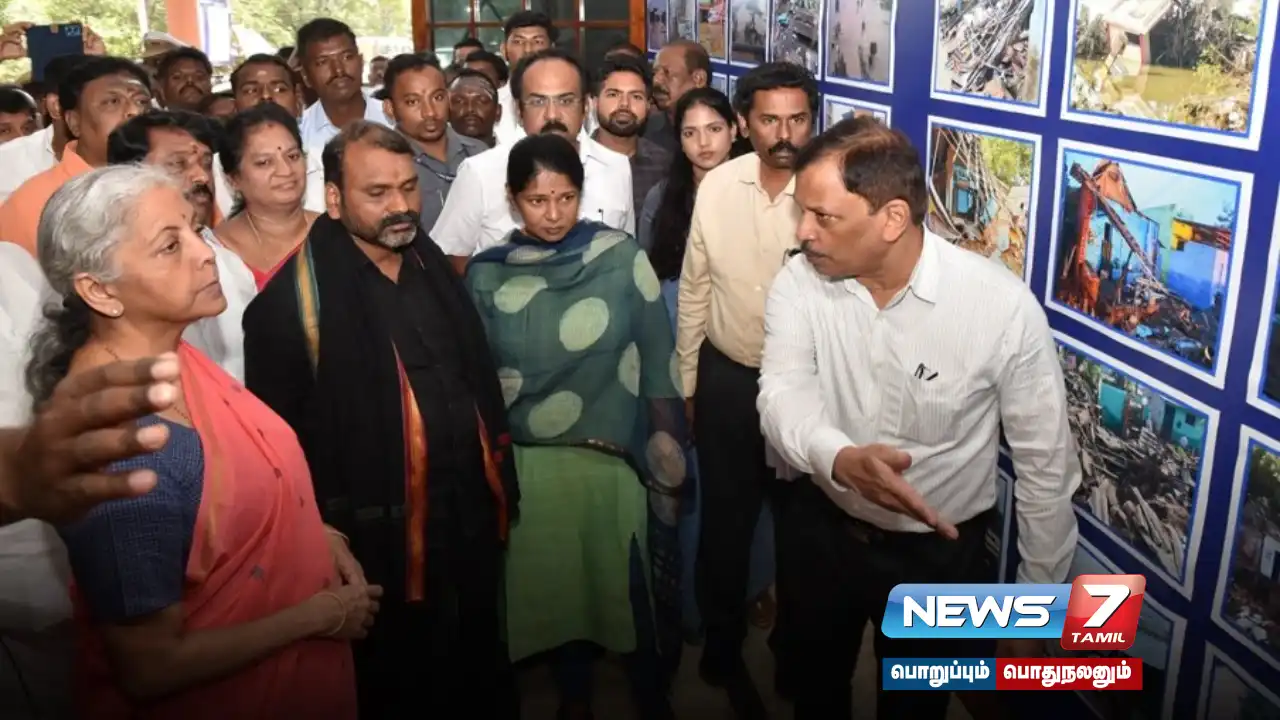 முன்னதாக, மாவட்ட ஆட்சியர் அலுவலகத்தில் மத்திய இணையமைச்சர் எல்.முருகன், அமைச்சர் தங்கம் தென்னரசு, தூத்துக்குடி எம்.பி. கனிமொழி மற்றும் தூத்துக்குடி, நெல்லை மாவட்ட ஆட்சியர்களுடன் மத்திய அமைச்சர் நிர்மலா சீதாராமன் ஆலோசனை மேற்கொண்டார்.