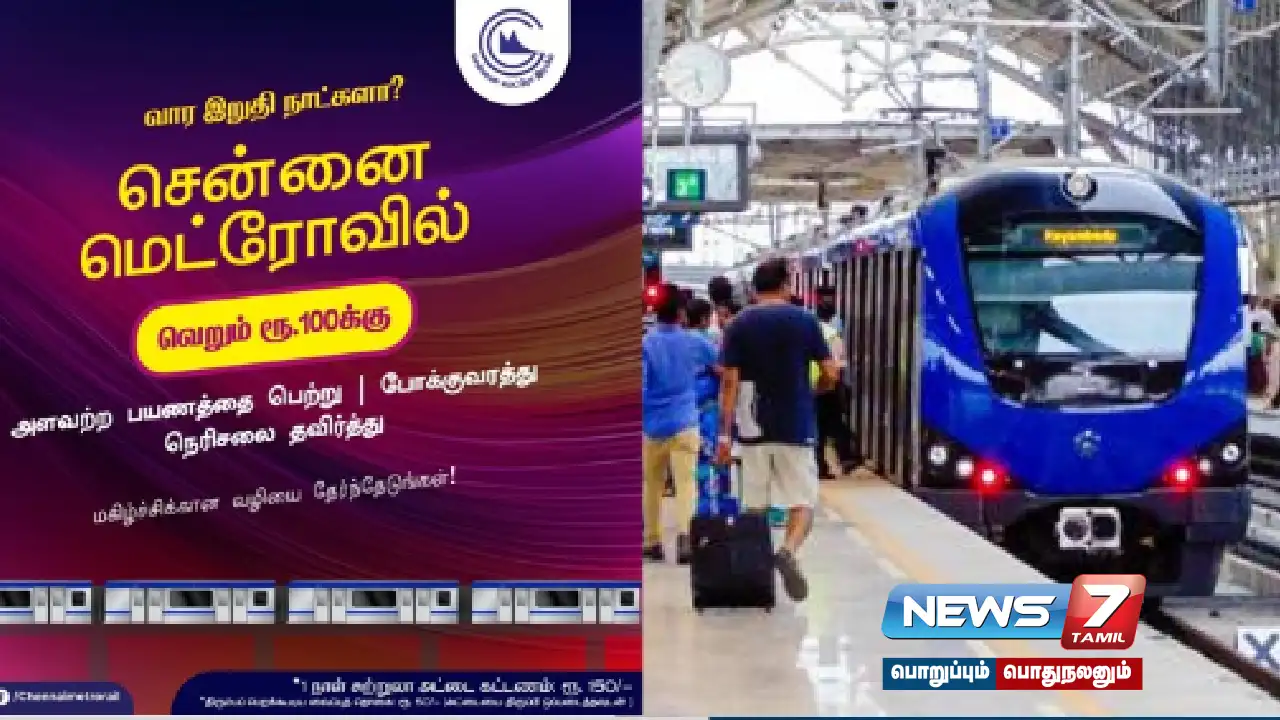 வார இறுதி நாட்களையொட்டி சென்னை மெட்ரோவில் ஒரு நாள் முழுக்க பயணம் செய்யும் வசதியை மெட்ரோ நிர்வாகம் அறிவித்துள்ளது.