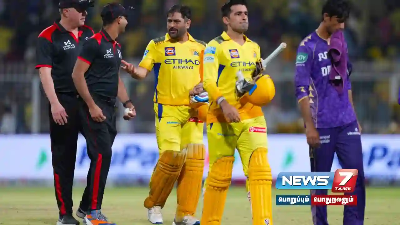 தொடர்ந்து களமிறங்கிய கம்போஜ் 3 பந்துகளில் 1 ரன் தேவைப்பட்ட நிலையில், பவுண்டரி அடித்து ஆட்டத்தை முடித்தார். இதன்மூலம் 4 ரன்கள் வித்தியாசத்தில் சென்னை அணி வெற்றிப் பெற்றது. கொல்கத்தா தரப்பில் அதிகபட்சமாக வைபவ் அரோரா 3 விக்கெட்டுகளும், ஹர்சித் ராணா, வருண் சக்கரவர்த்தி தலா 2 விக்கெட்டுகளையும், மொயீன் அலி 1 விக்கெட்டும் வீழ்த்தினர்.